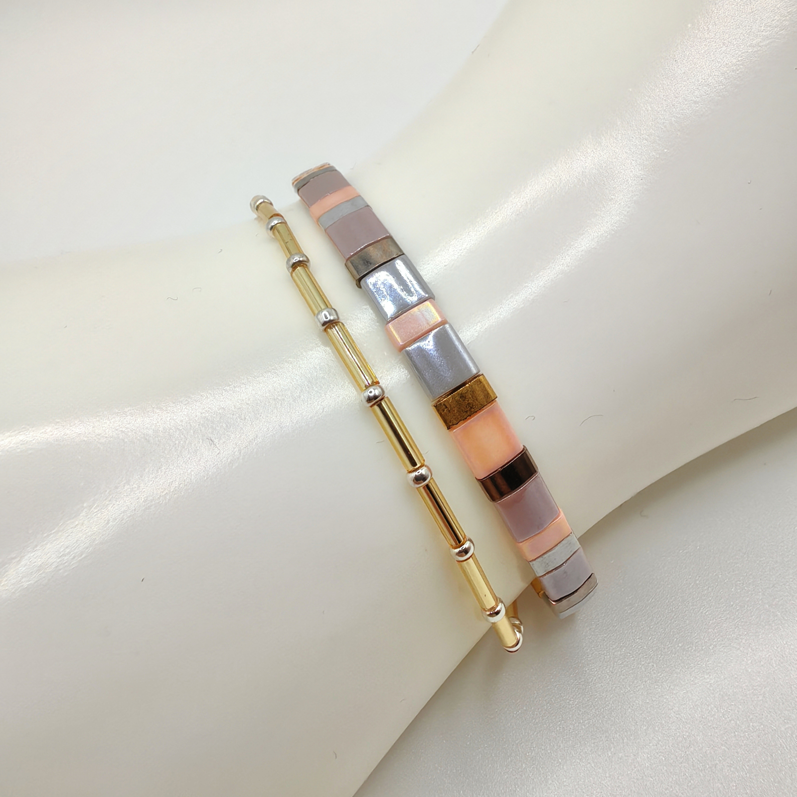 Asha - Set 2 bratari margele Miyuki din Japonia, placate cu Aur 24K si Argint 925
