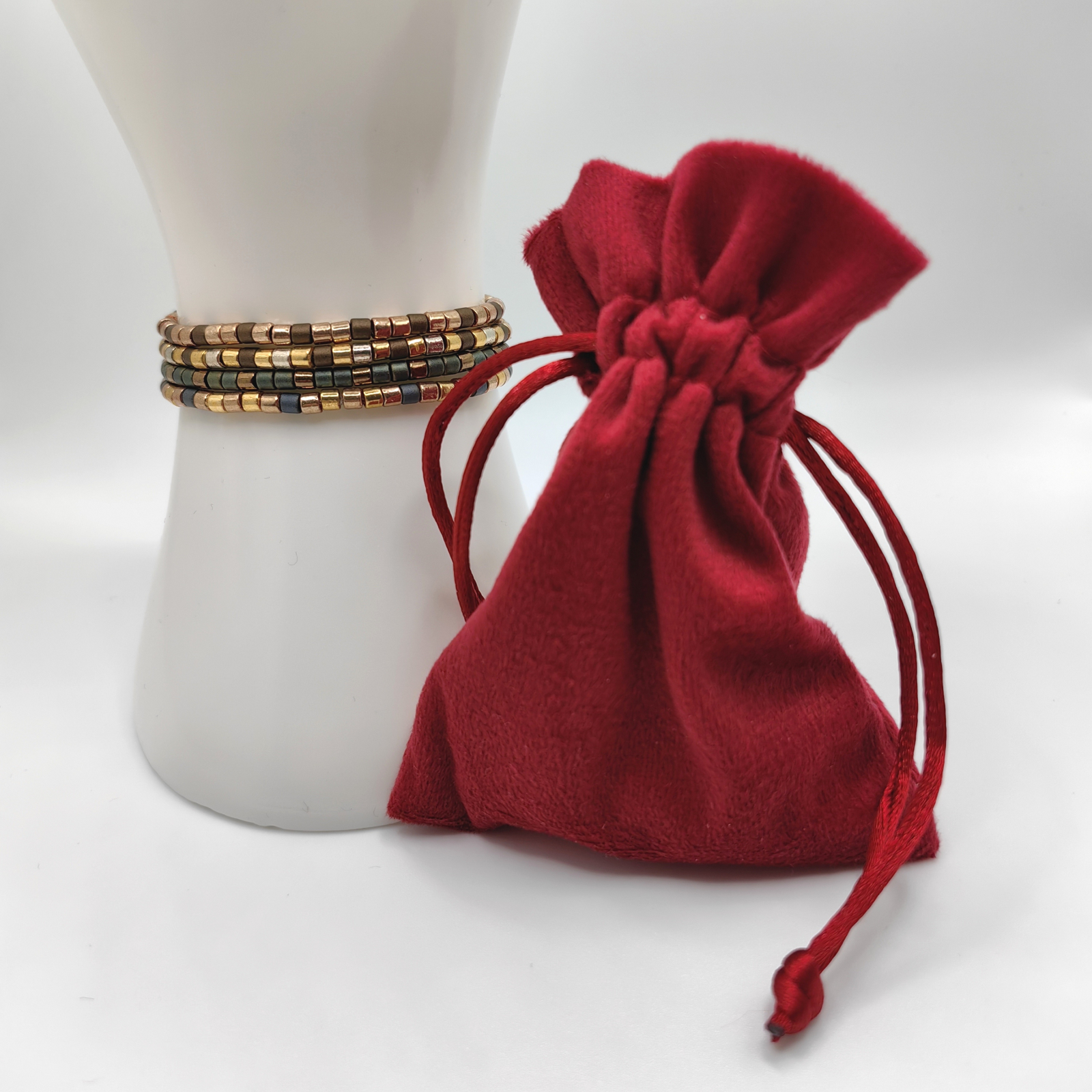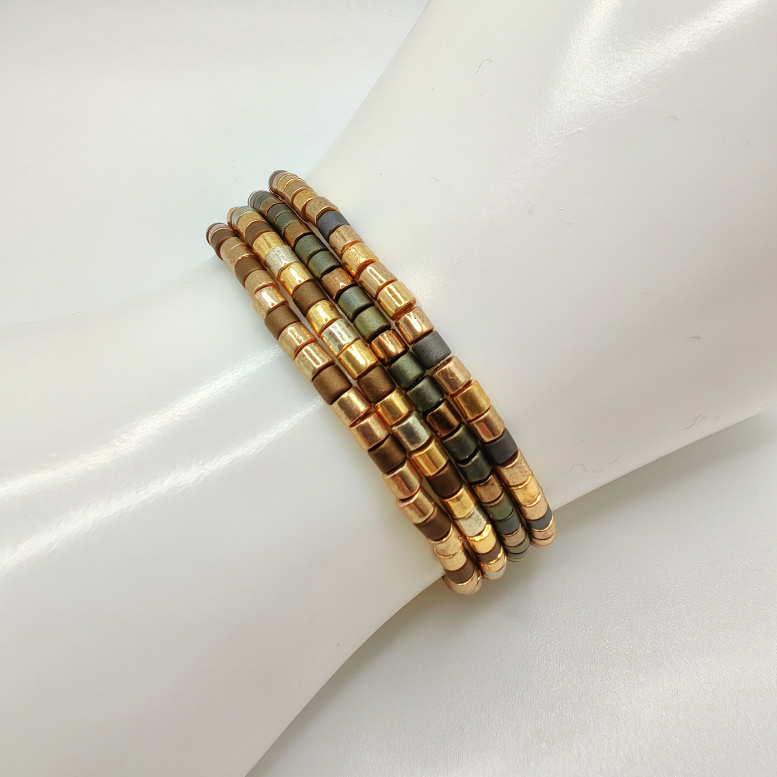 Materiale folosite: margele Miyuki din Japonia, elastic rezistent. Bratarile sunt confectionate din margele delicate de 3 mm, ceea ce le ofera un aspect fin si elegant.