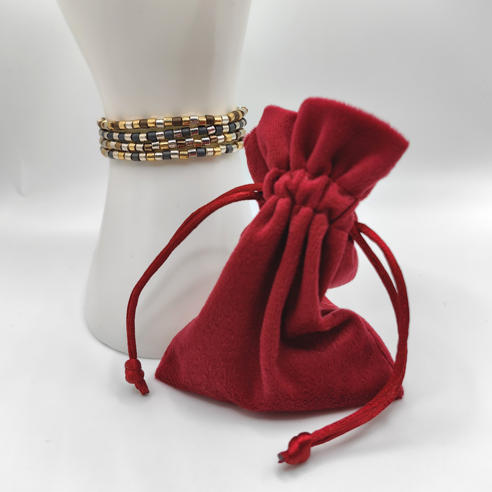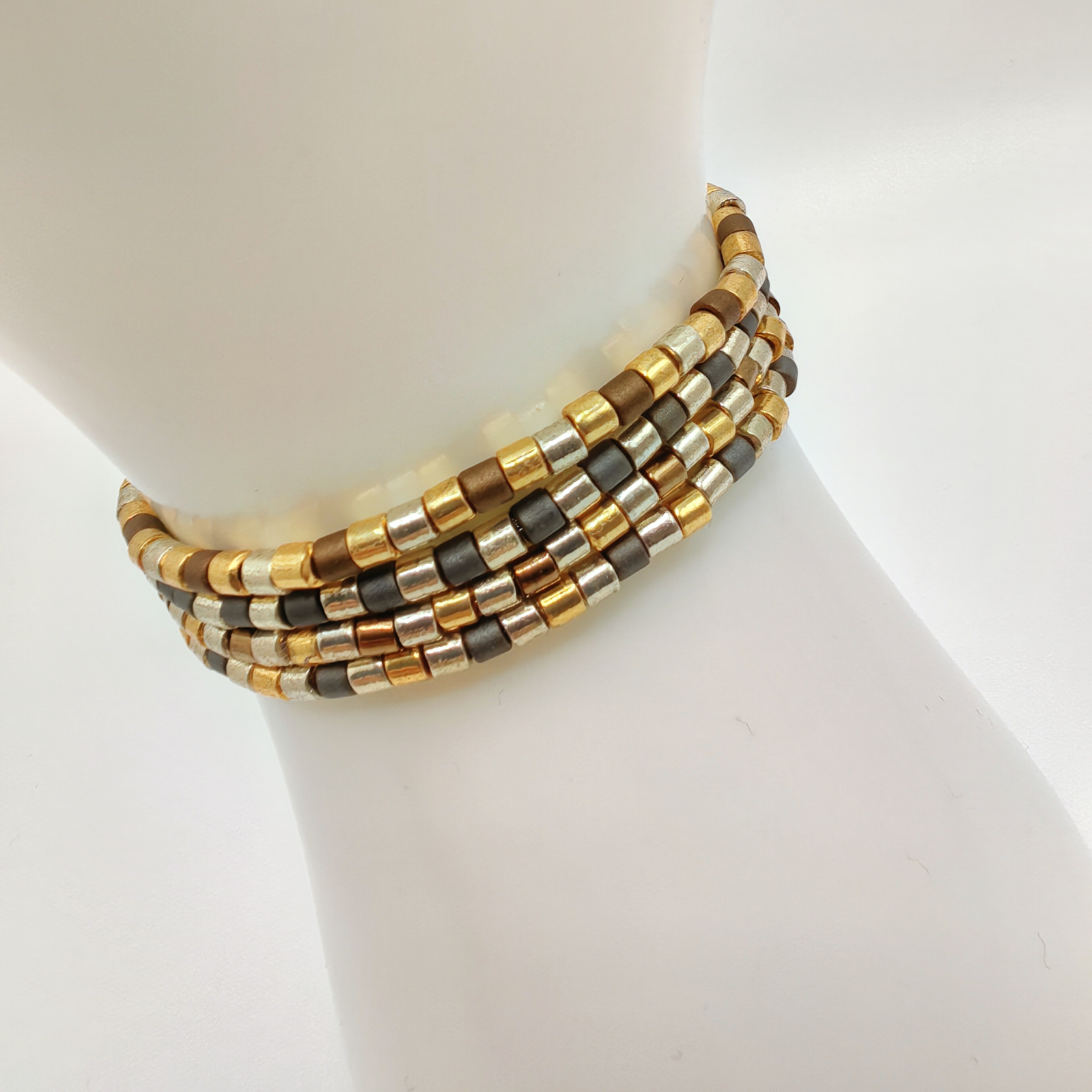 Materiale folosite: margele Miyuki din Japonia, elastic rezistent. Bratarile sunt confectionate din margele delicate de 3 mm, ceea ce le ofera un aspect fin si elegant.