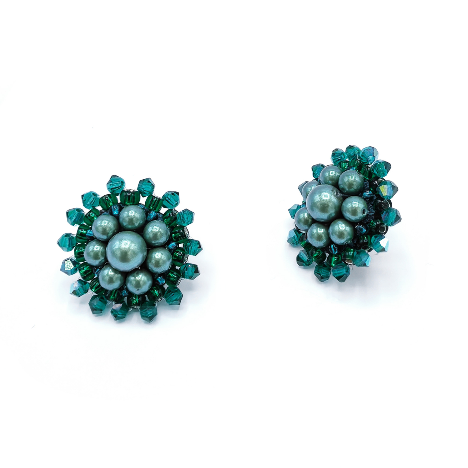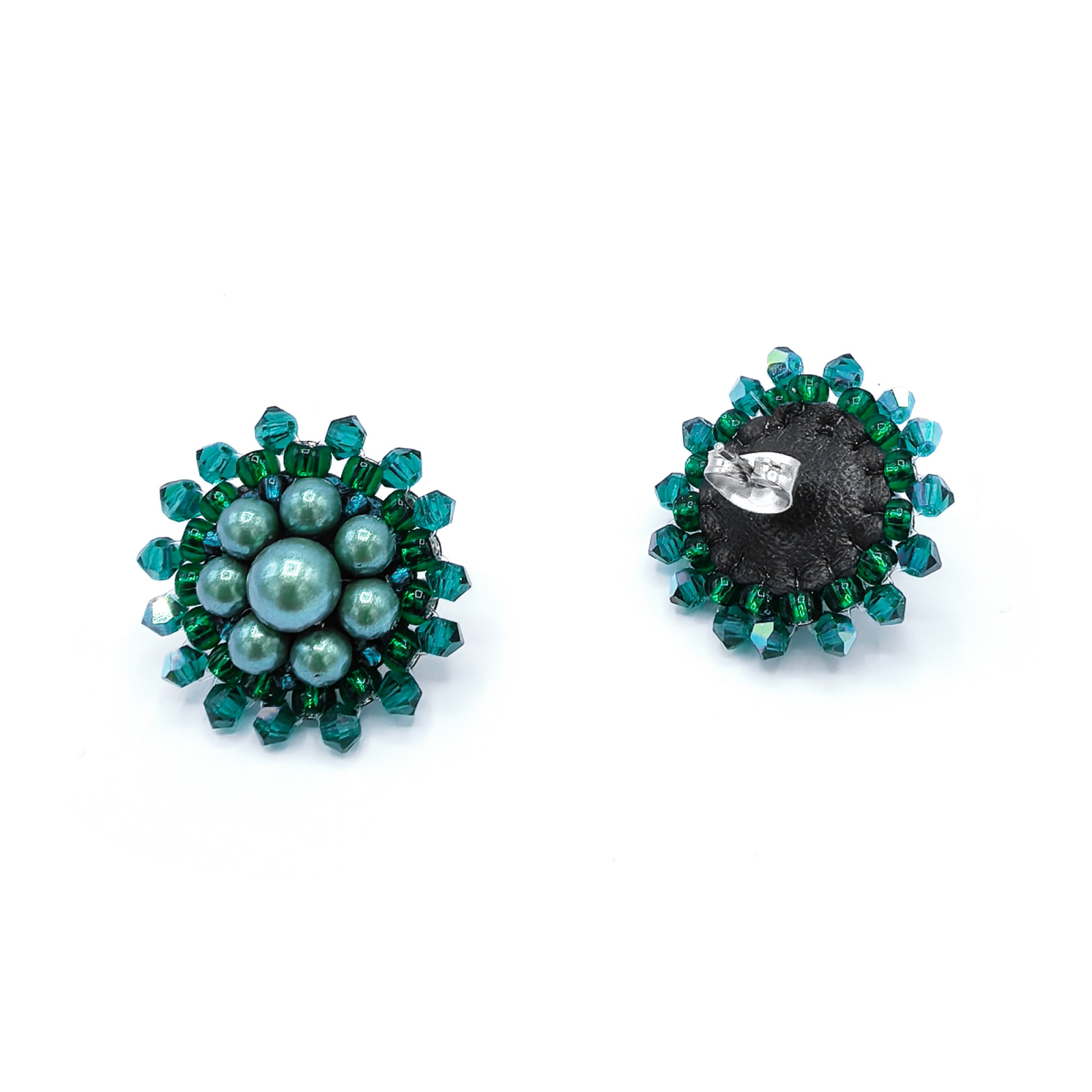 Materiale folosite: perle si cristale de calitate superioara (tip Mallorca, Preciosa, Miyuki din Japonia), piele, ac si surub din otel inoxidabil 304.