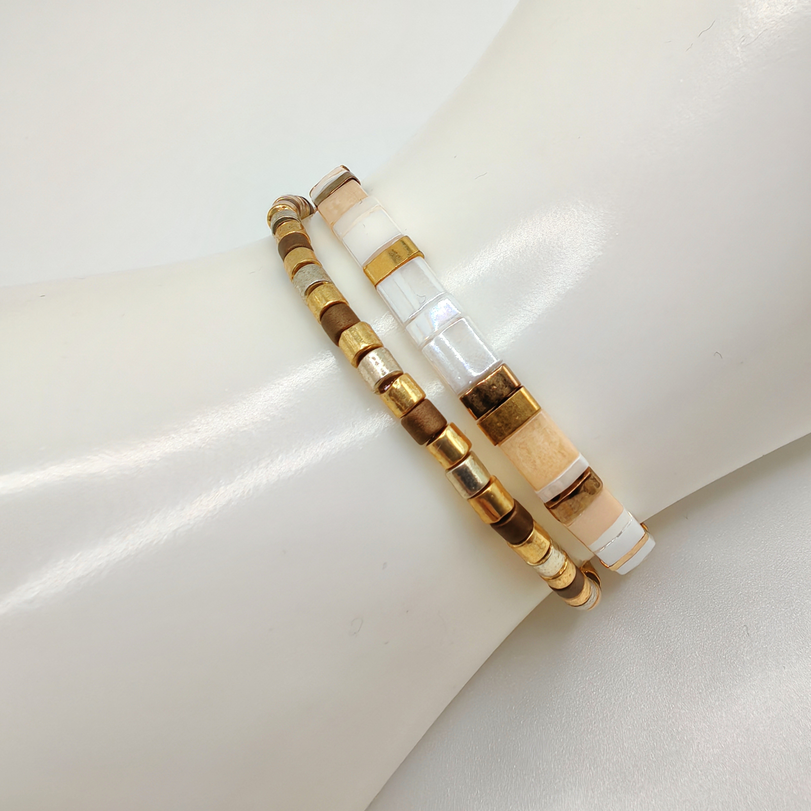 Lunara - Set 2 bratari margele Miyuki din Japonia, placate cu Aur 24K