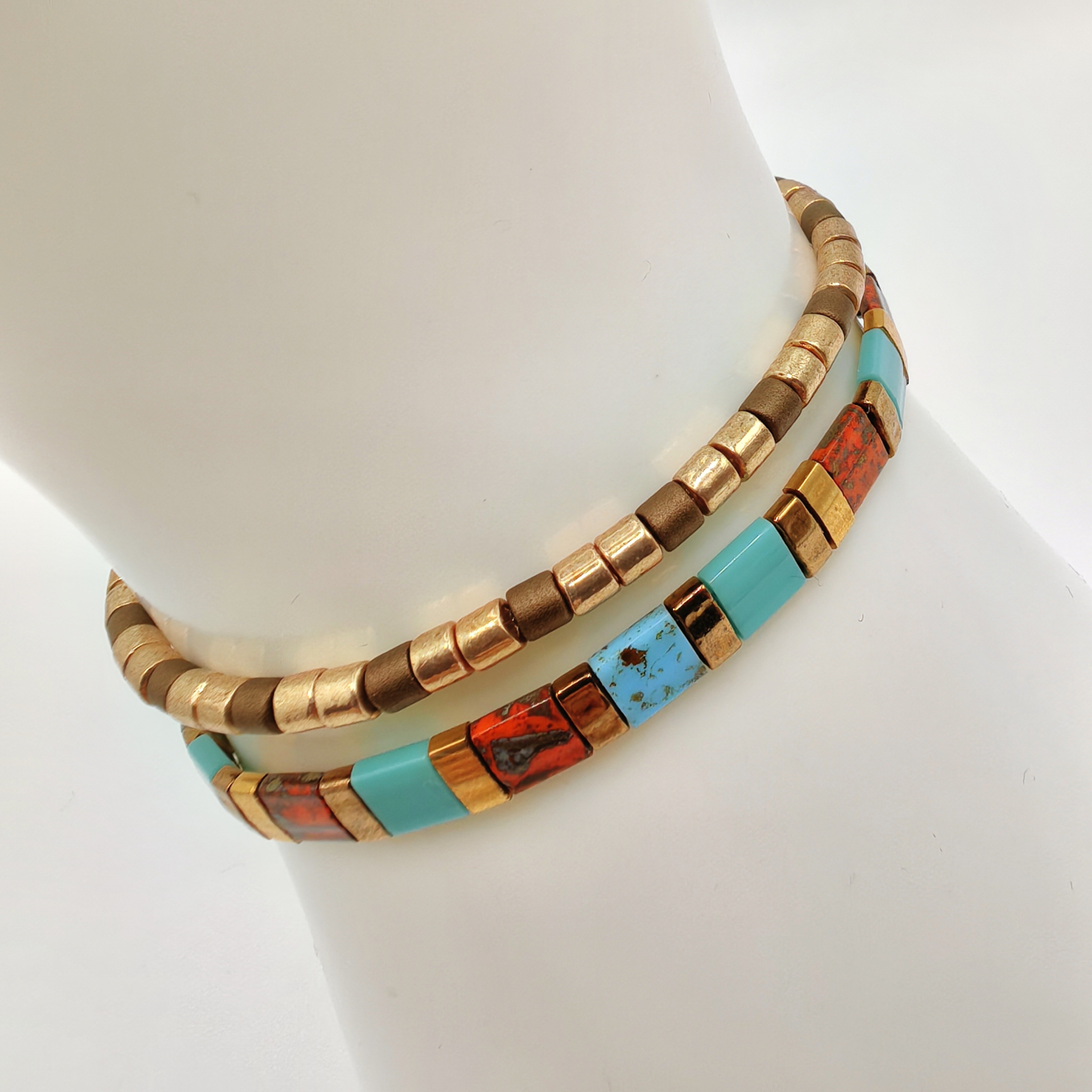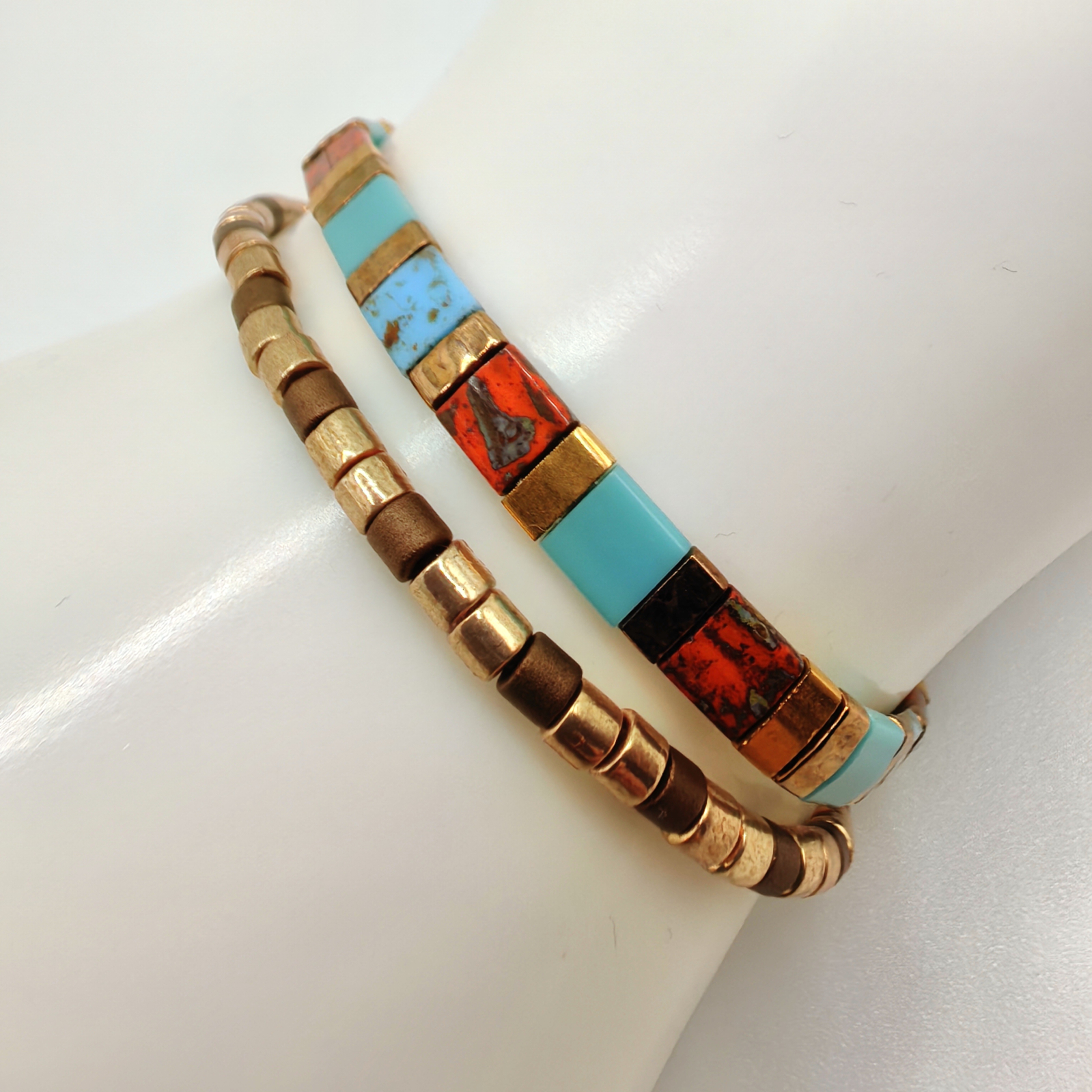 Saira - Set 2 bratari margele Miyuki din Japonia, placate cu Aur 24K