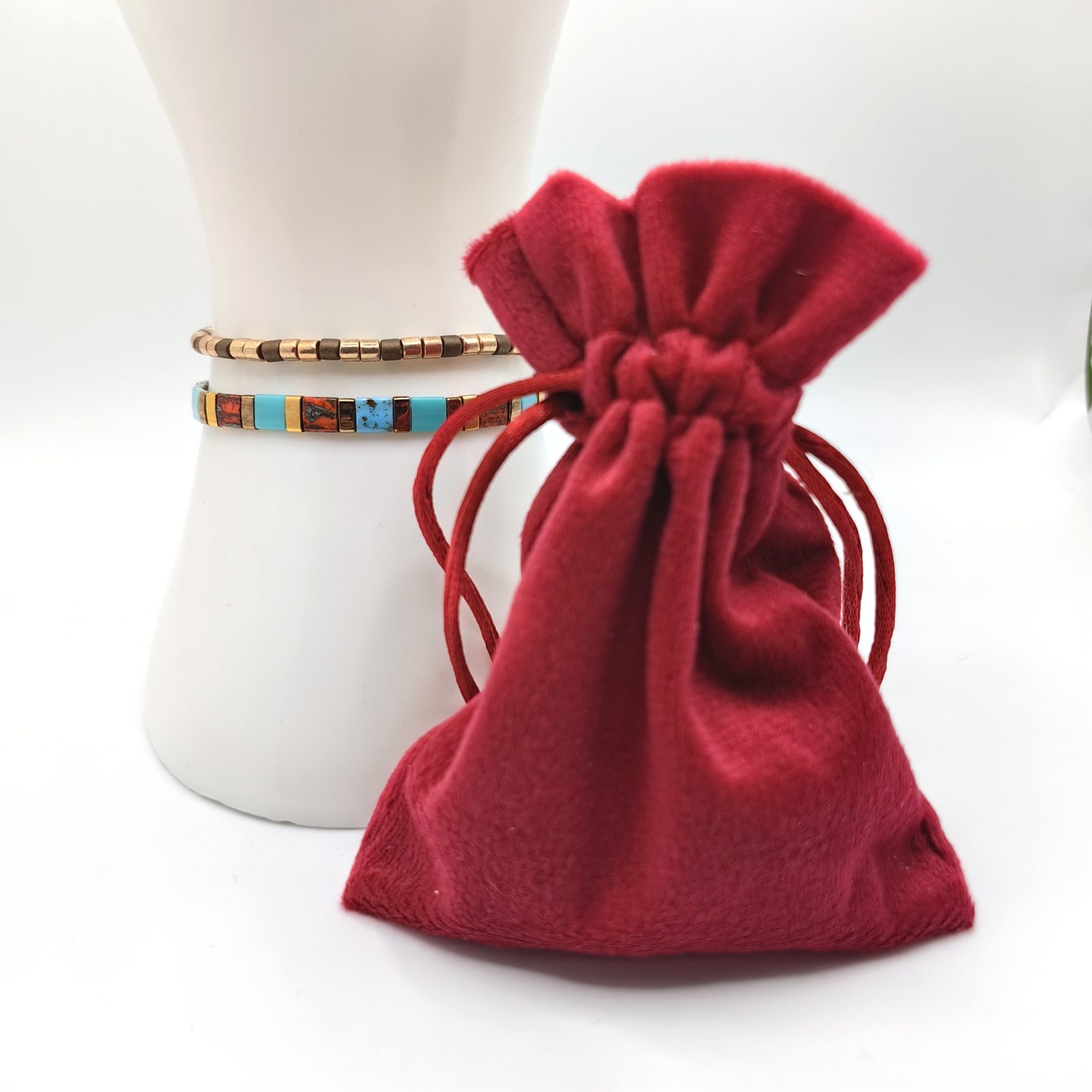 Materiale folosite: margele Miyuki din Japonia, margele Miyuki placate cu Aur 24K, elastic rezistent. Bratarile sunt confectionate din margele delicate, cu dimensiuni intre 3 si 4 mm, ceea ce le ofera un aspect fin si elegant.