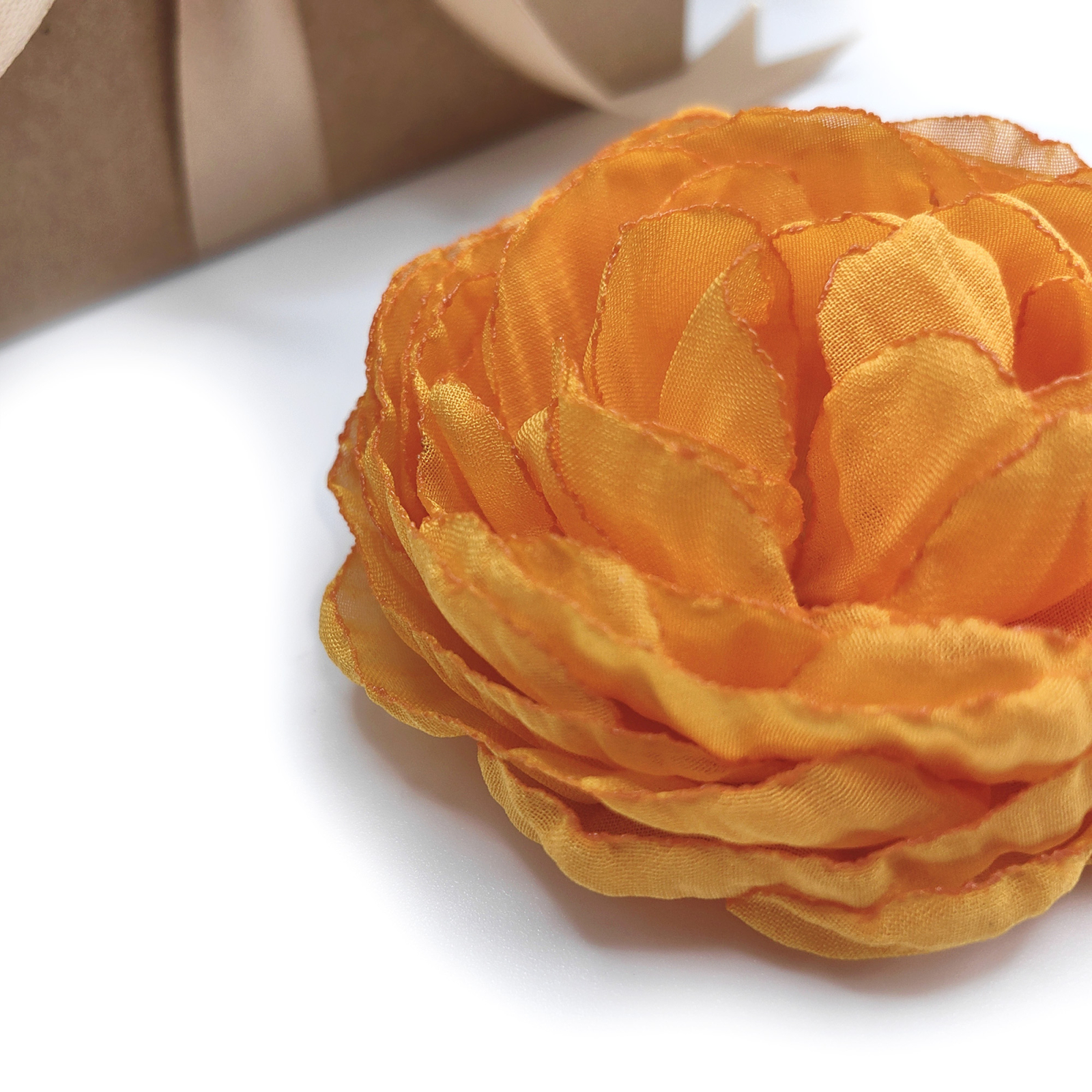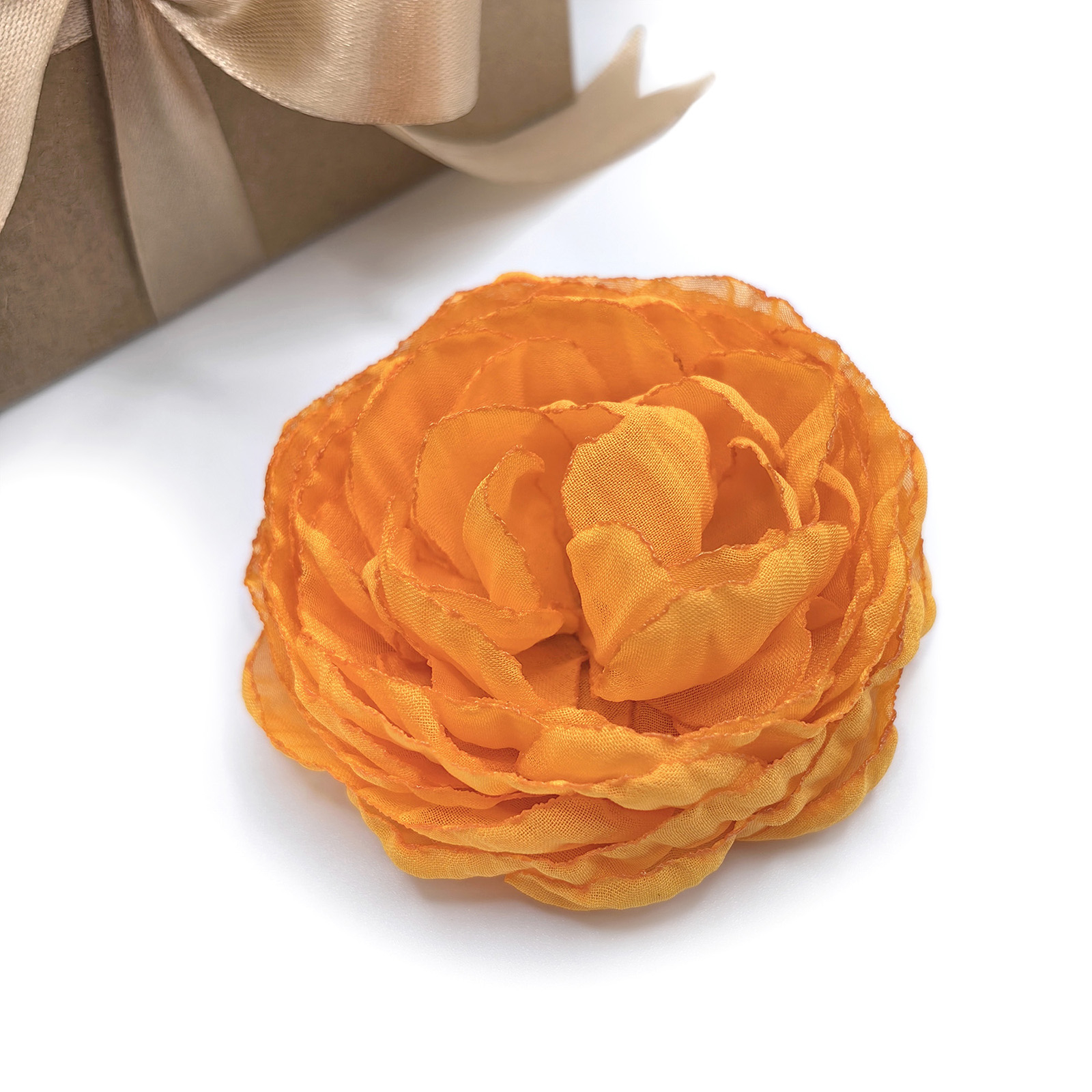 SO SWEET - Brosa eleganta floare bujor din voal 7.5 cm culoarea portocaliu