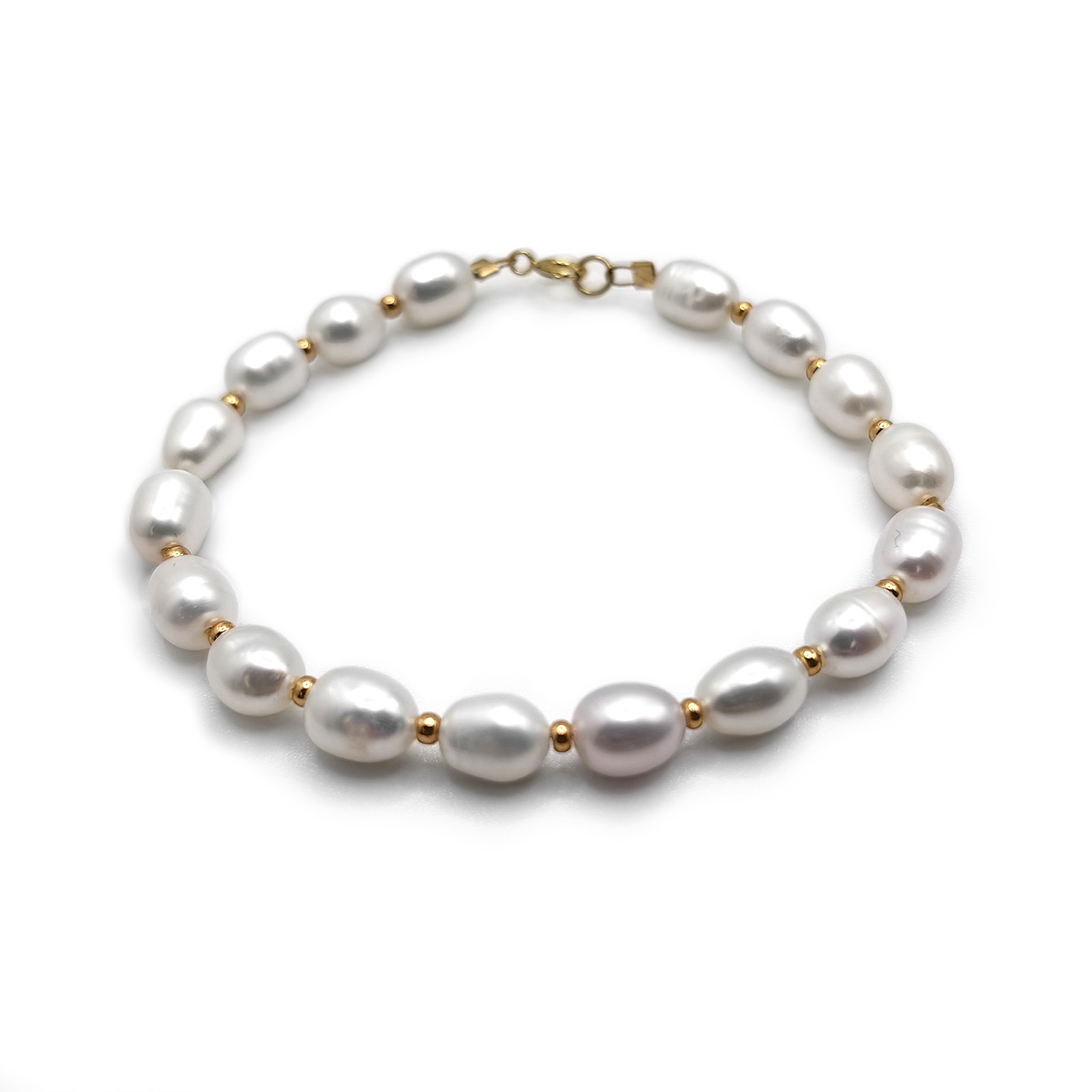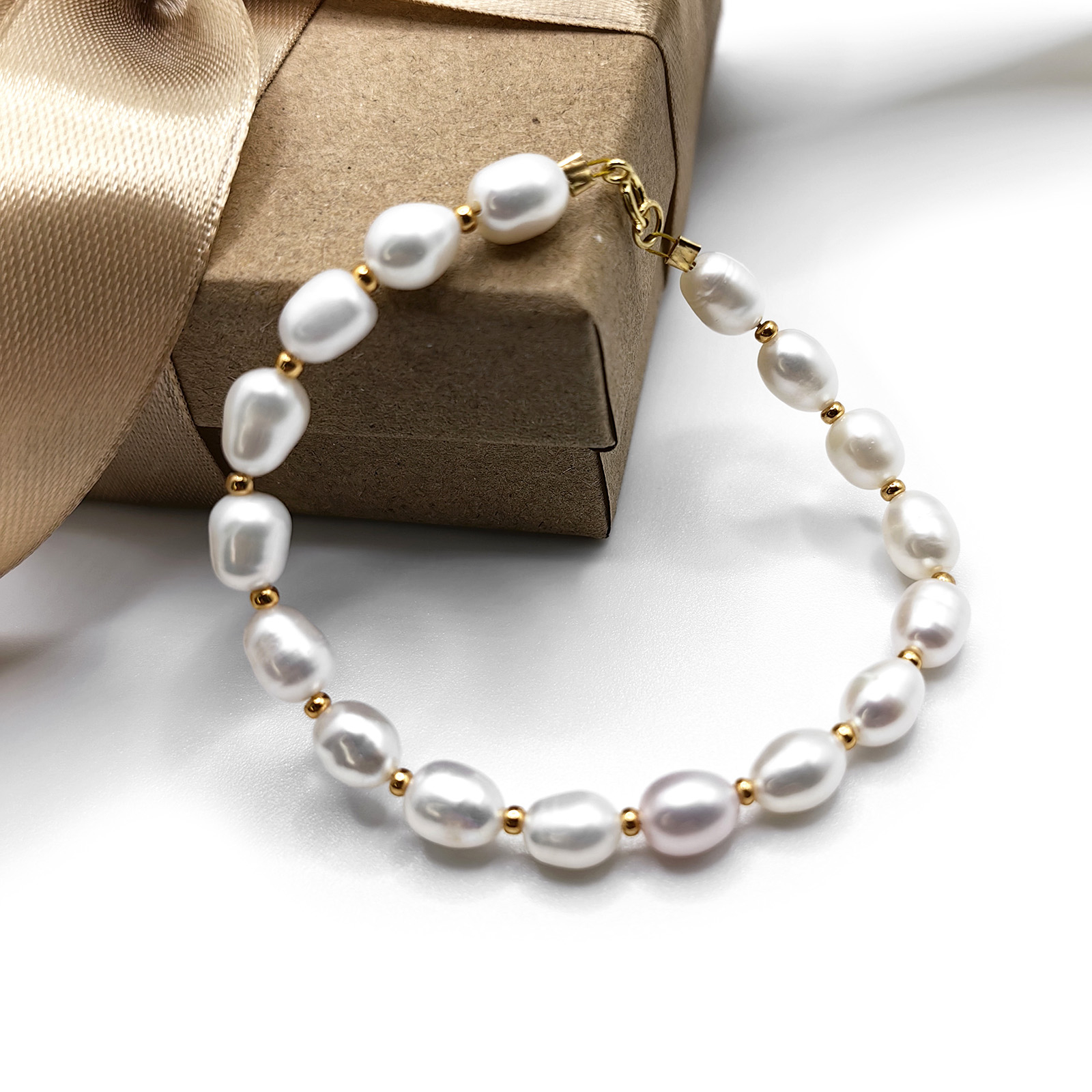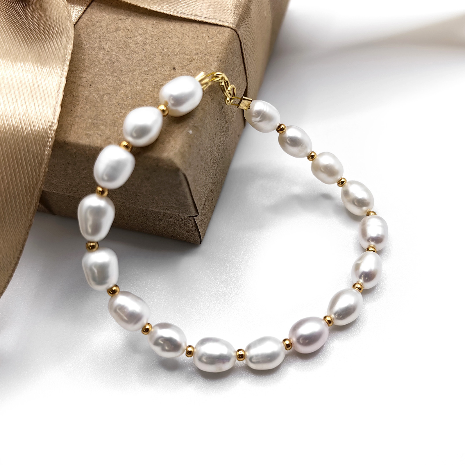 Fine Pearl este bratara care aduce eleganta, rafinament si feminitate in fiecare detaliu. Realizata manual cu perle naturale de cultura si accente aurii, aceasta piesa subliniata de o inchizatoare din Argint 925 placata cu Aur este alegerea perfecta pentru femeile care iubesc stilul delicat si atemporal. Se poarta la ocazii speciale, dar si in tinute de zi, aducand un plus de lumina si stil oricarui look.