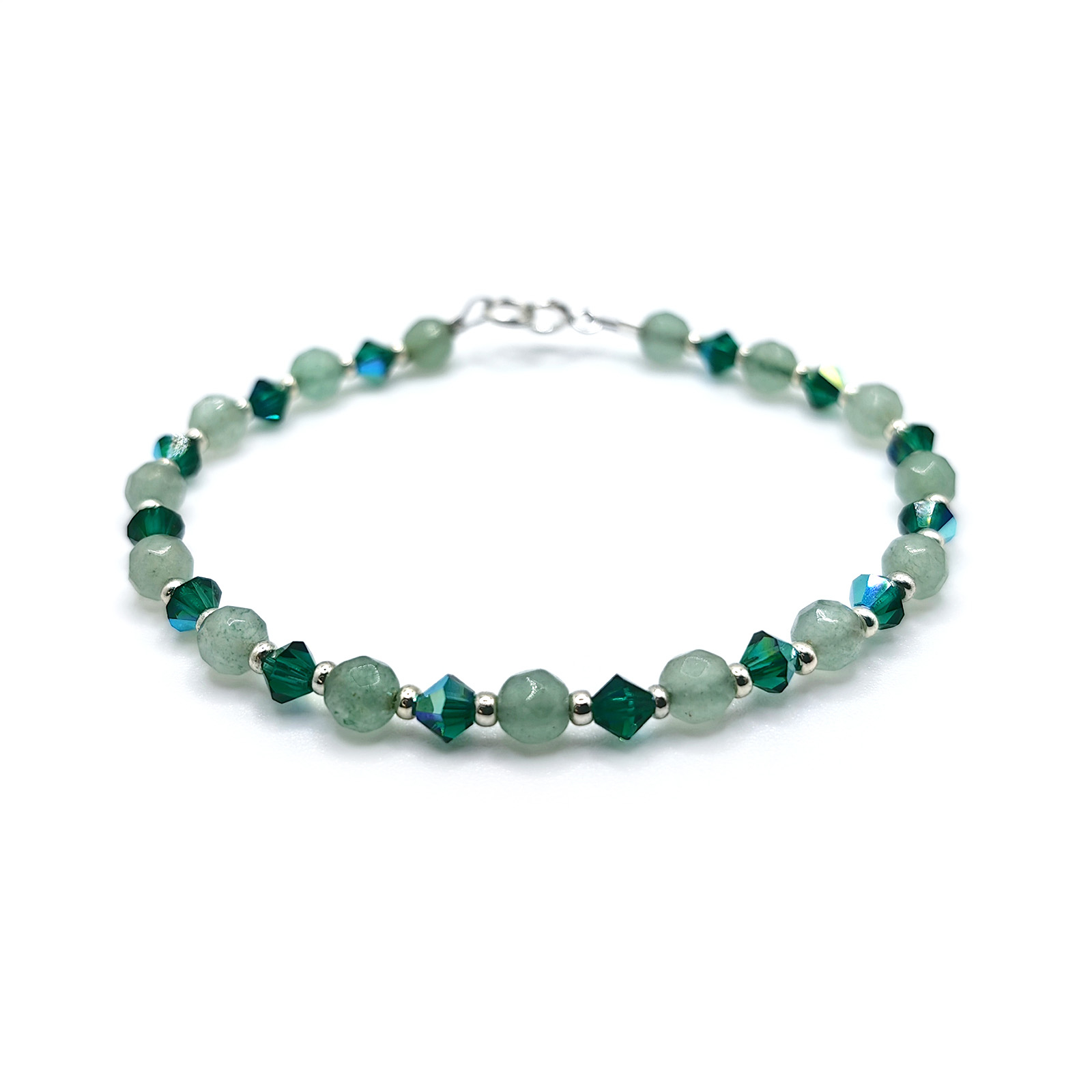 Gentle Glow este o bratara fina si eleganta, realizata manual din pietre semipretioase de aventurin si cristale Preciosa de 4 mm, completata cu margele Miyuki din Japonia si inchizatoare din Argint 925. Designul delicat si nuanta naturala de verde transmit echilibru si energie pozitiva, aducand o nota subtila de stralucire oricarei tinute. Este bratara perfecta pentru femeile care iubesc bijuteriile rafinate si detaliile pline de sens.