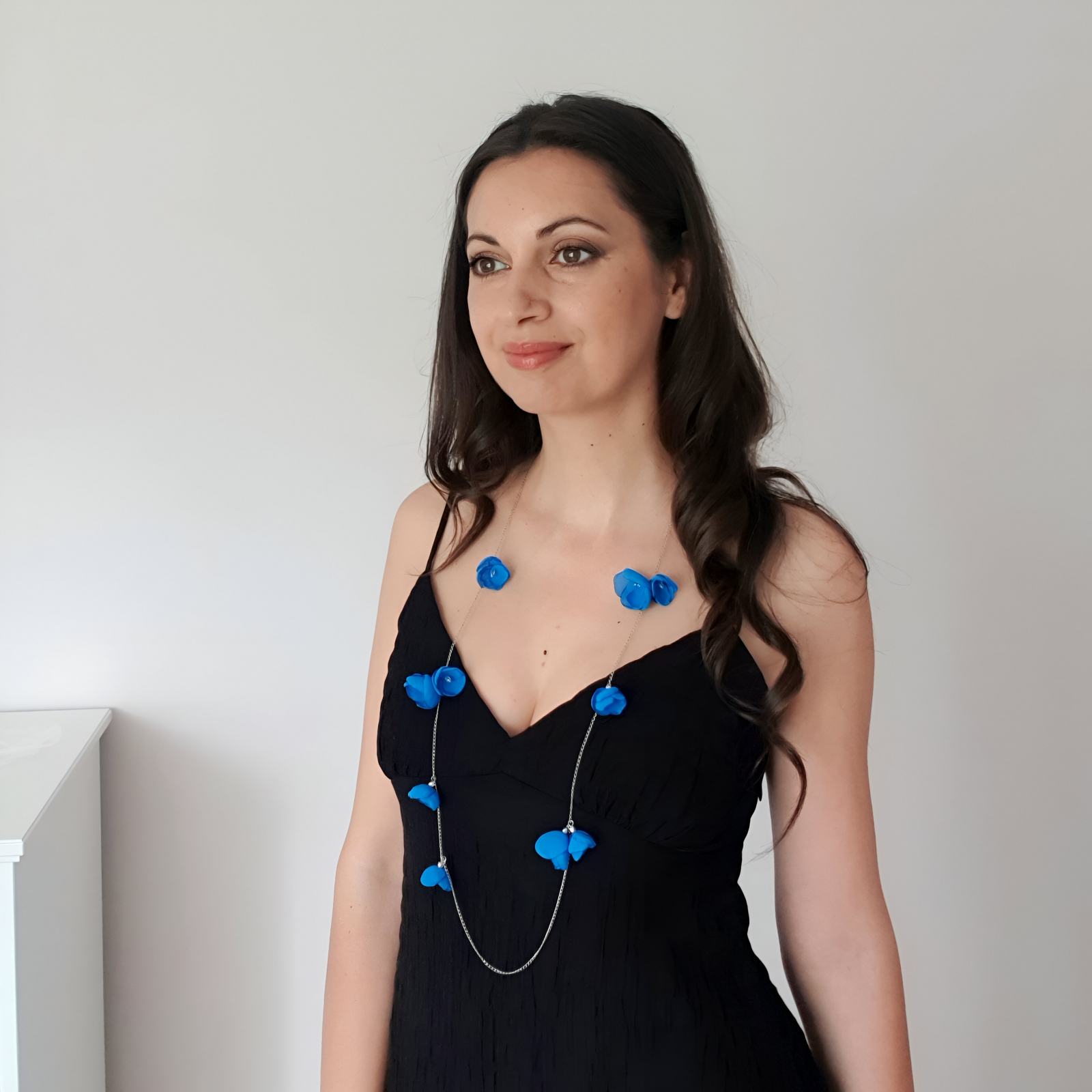 Materiale folosite: flori din voal, cristale Cehia, Miyuki Japonia, otel inoxidabil 304.