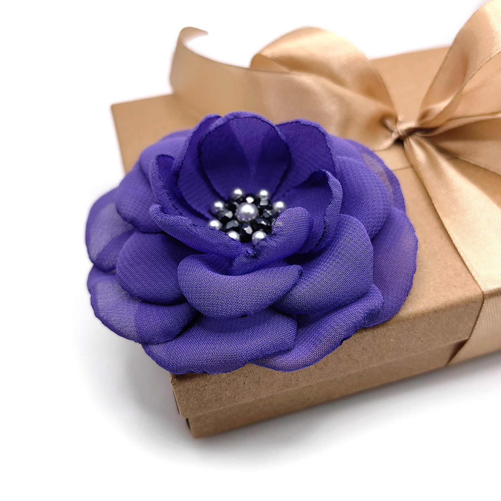 Delicate este brosa care exprima finete si gingasie. Fiecare petala din voal este lucrata manual, iar centrul cu perle si cristale adauga un accent luminos si elegant, transformand tinutele simple in aparitii deosebite.
