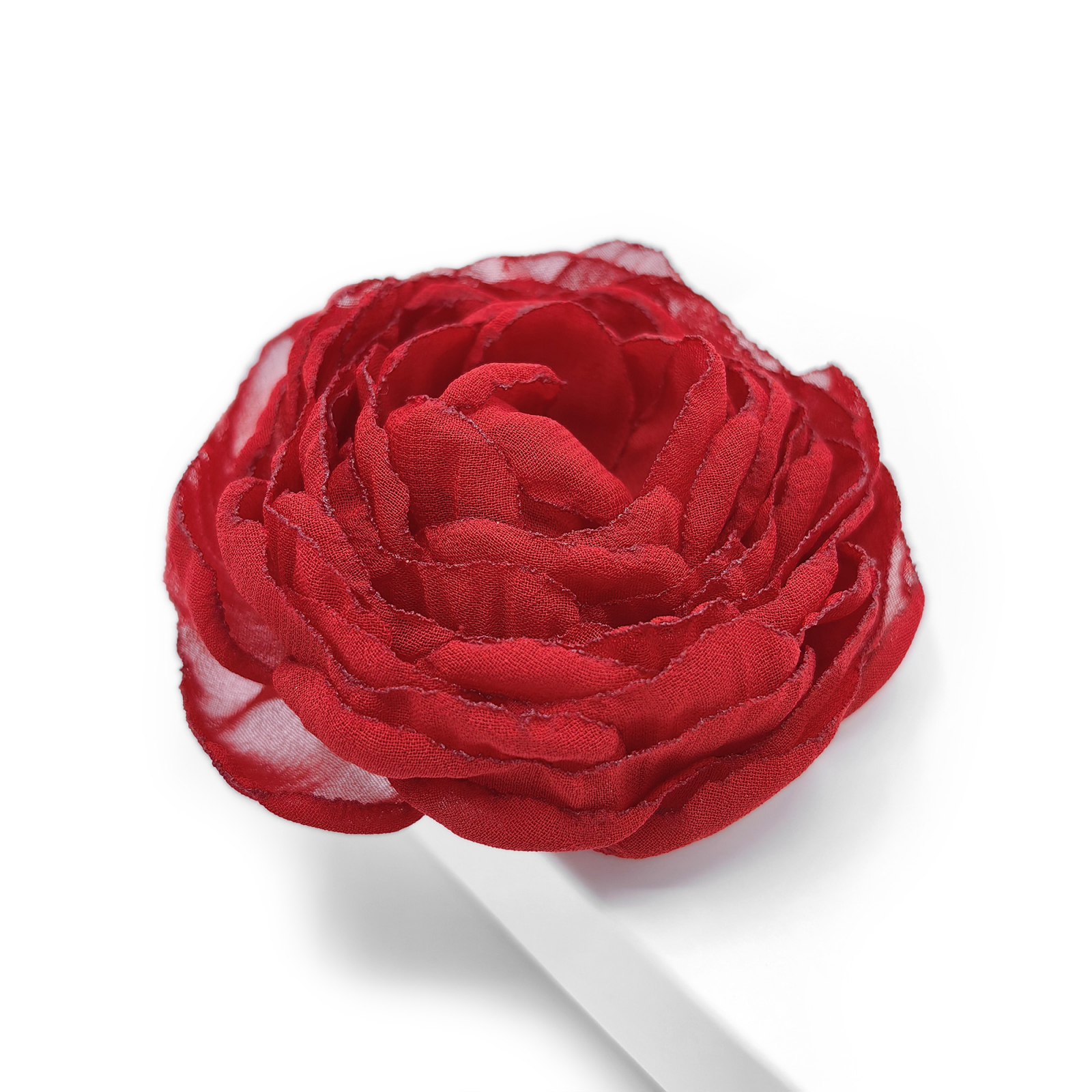 Mod de realizare: Floarea este creata dintr-un voal fin, cu atentie la fiecare detaliu, materialul fiind incretit manual. Fiecare petala este cu grija taiata in forme variate pentru a reda aspectul natural al unui bujor. Marginile petalelor sunt topite la lumanare, pentru a evita dezintegrarea materialului. Realizarea florii se face din 37 de petale care sunt atent cusute impreuna, iar partea din spate a florii este delicat captusita cu piele naturala, pentru un finisaj rafinat. In plus, brosa este accesorizata cu un suport din otel inoxidabil pentru a-ti oferi o bijuterie frumoasa si durabila.