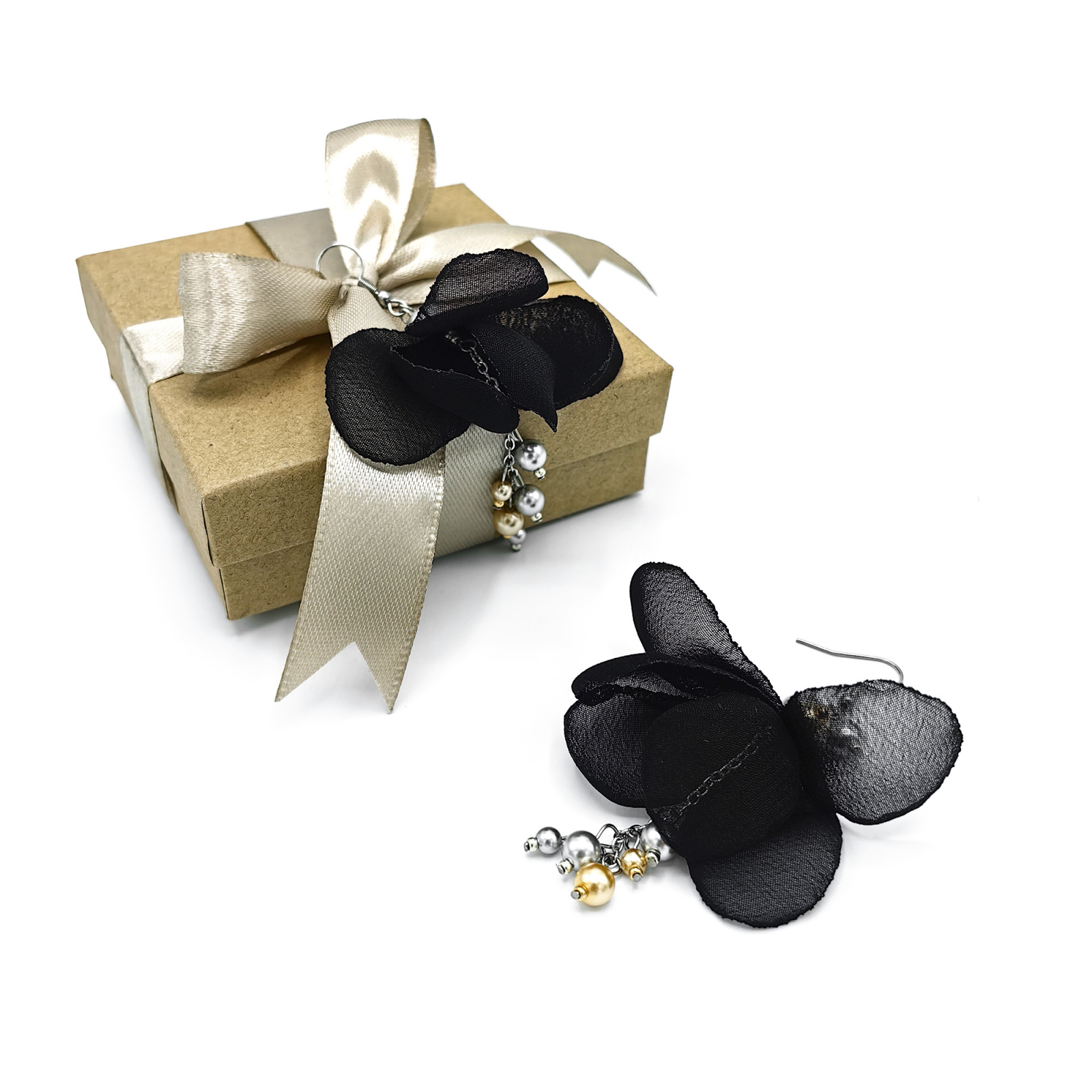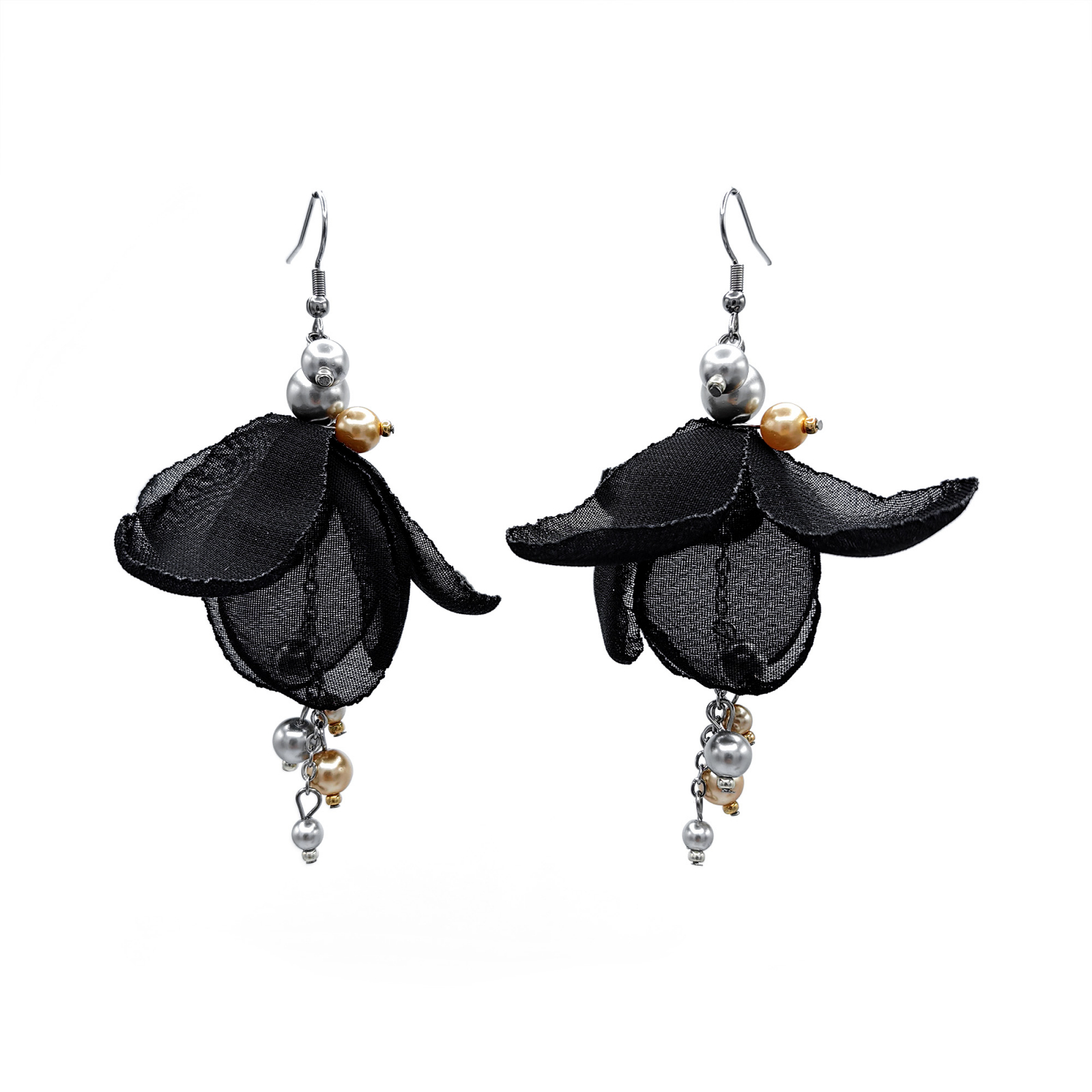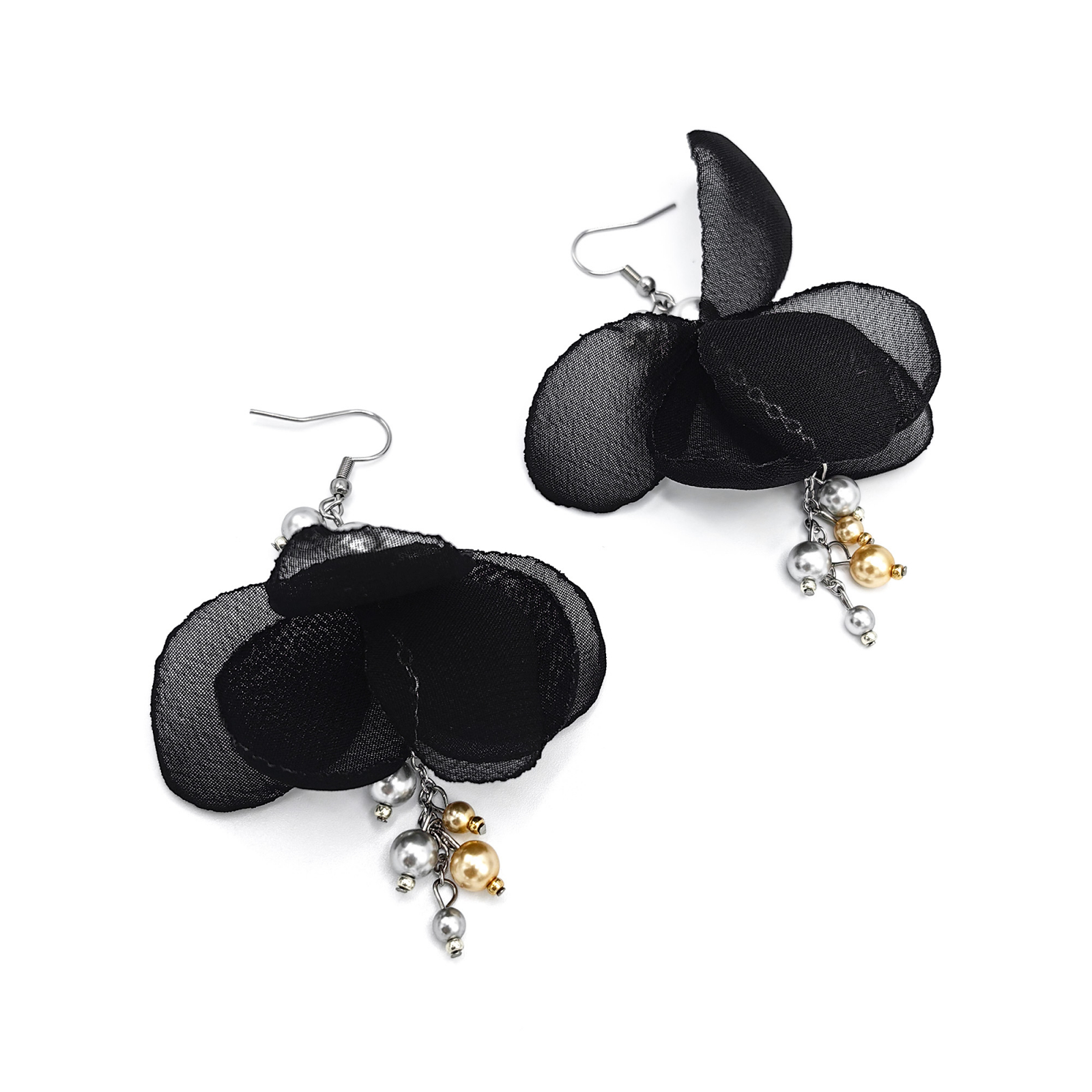 FAIRY - Cercei lungi din voal culoarea negru perle argintii si aurii si inox
