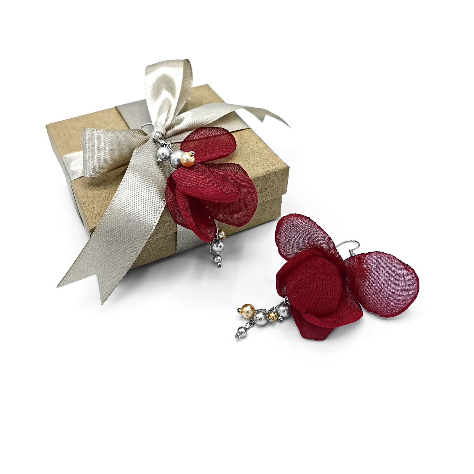 FAIRY este despre feminitatea visatoare si eleganta care pluteste. Cerceii sunt realizati cu atentie din voal fin, decorati cu perle in nuante aurii si argintii si montati pe inox. Sunt bijuterii usoare, cu o energie calma, care completeaza orice aparitie cu gratie.