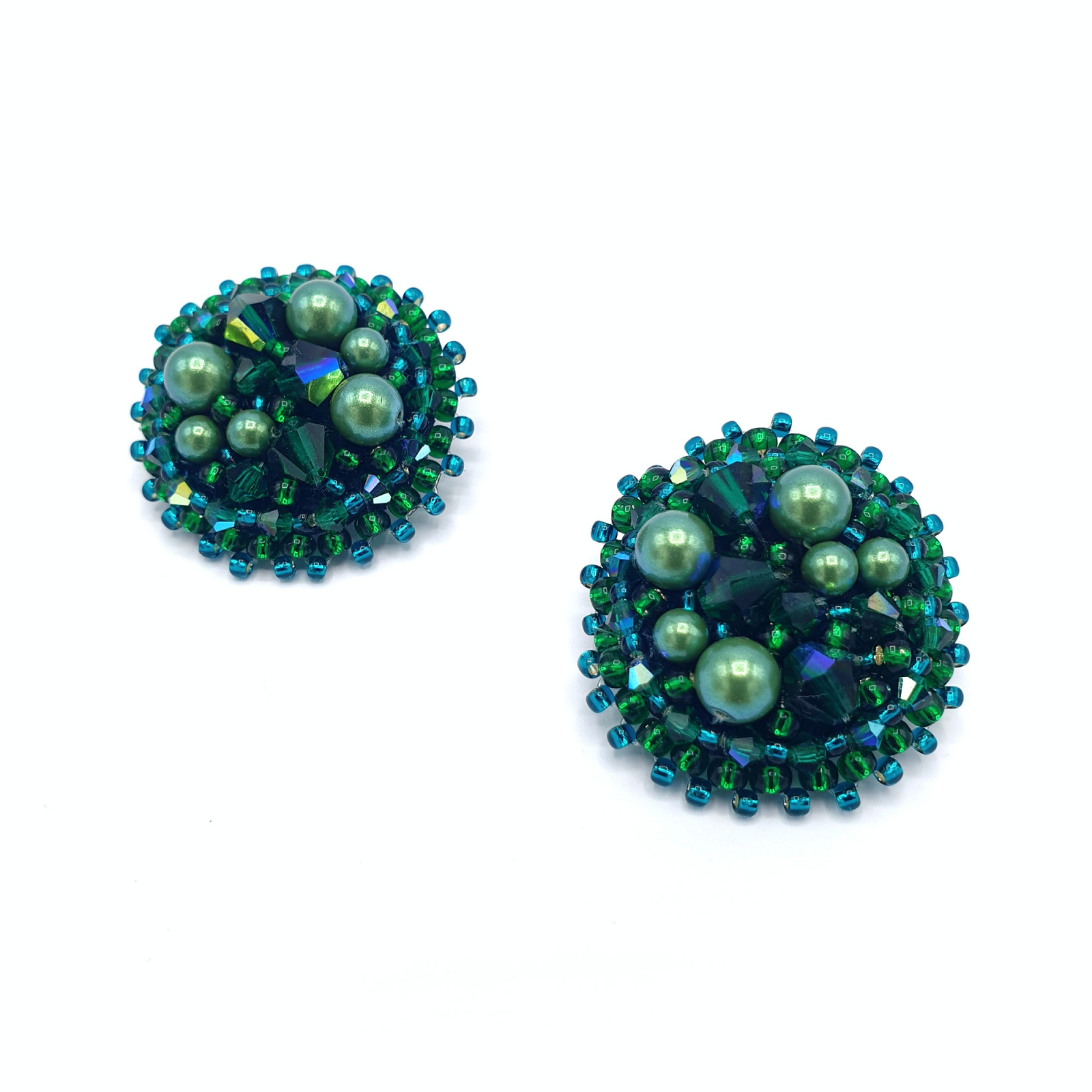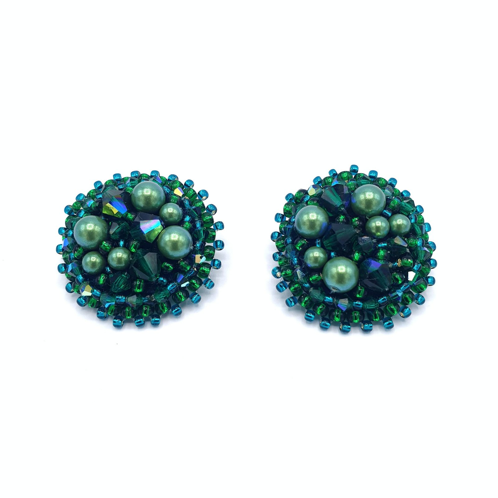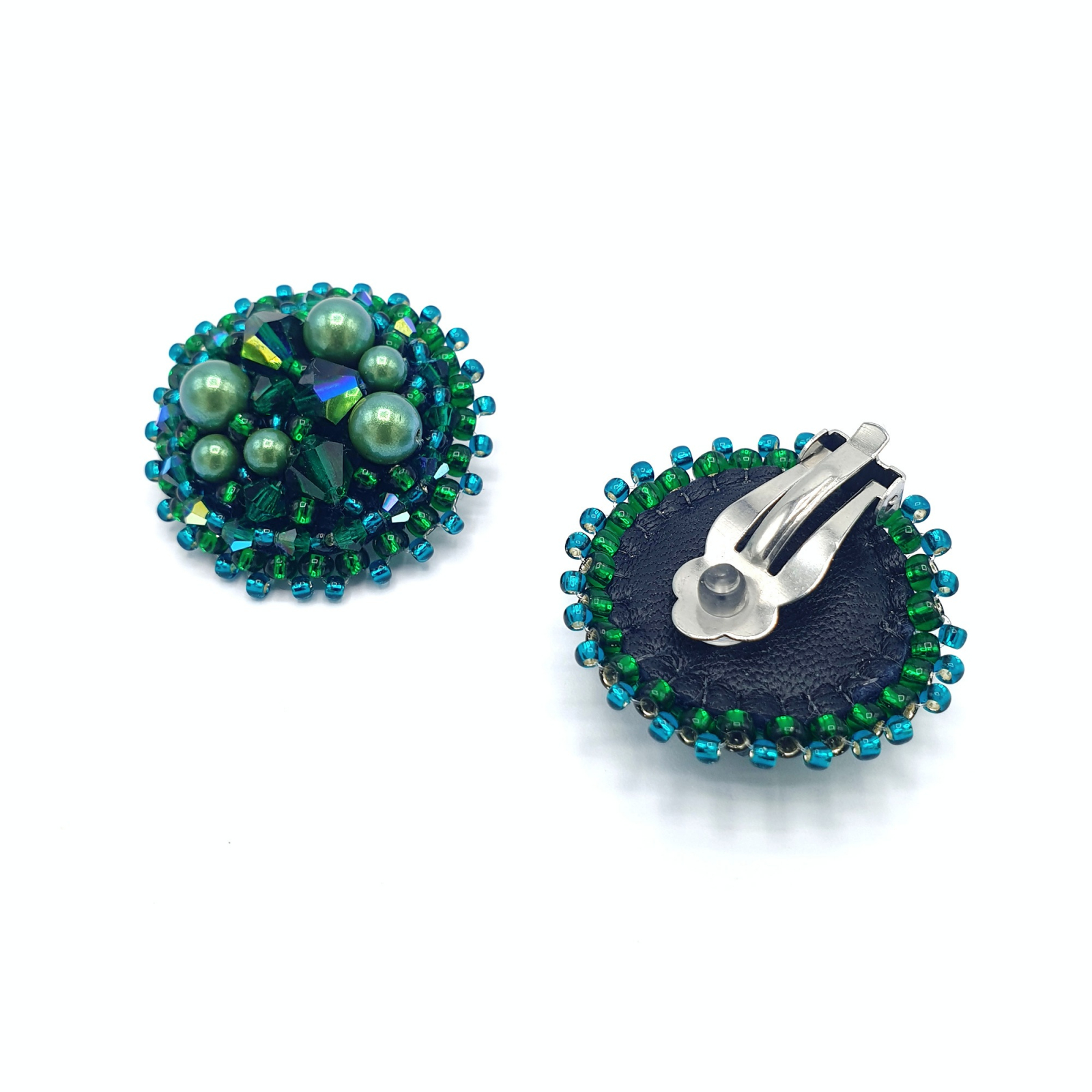 Materiale folosite: perle si cristale de calitate superioara (tip Mallorca, Preciosa, Miyuki Japonia, Cehia), piele, clips din otel inoxidabil 304.