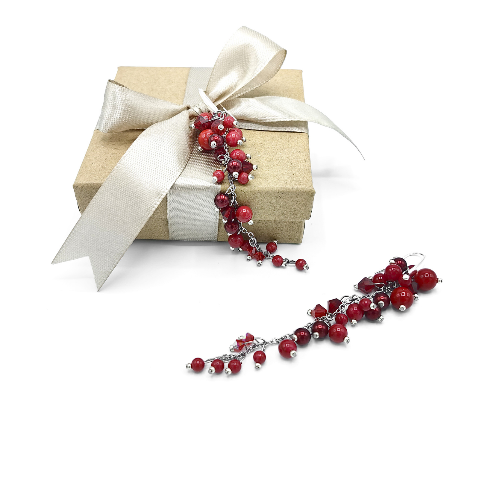 Materiale folosite: perle si cristale de calitate superioara (tip Mallorca, Preciosa), margele Miyuki din Japonia; ace, tortite si lant din otel inoxidabil 304.