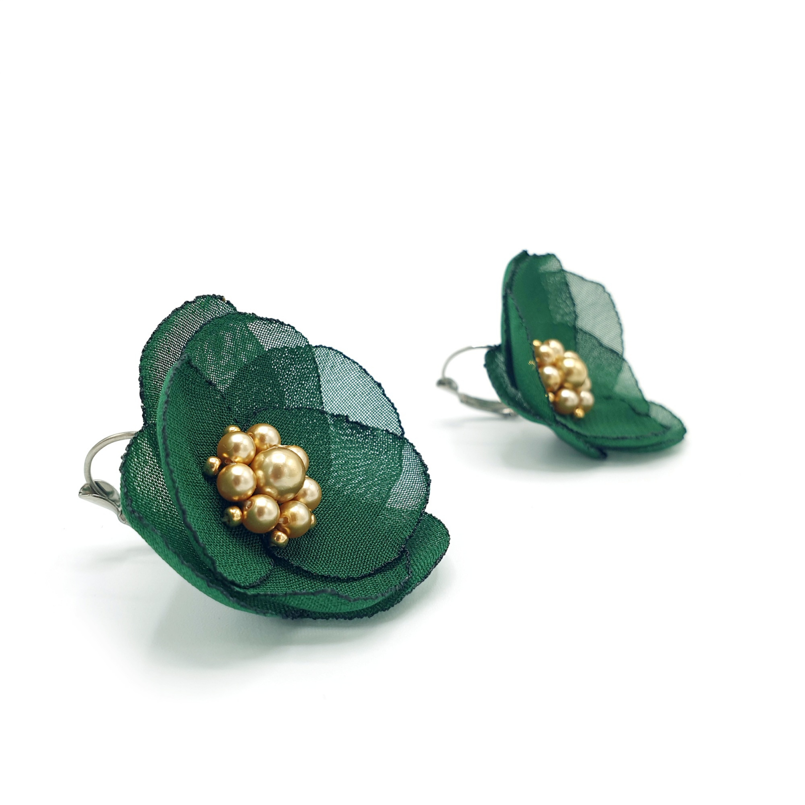Cerceii LOVE sunt creati pentru a aduce un strop de poezie in fiecare zi. Forma florii, textura matasoasa a voalului si perlele din centru formeaza un trio delicat, cu impact vizual subtil si elegant.
