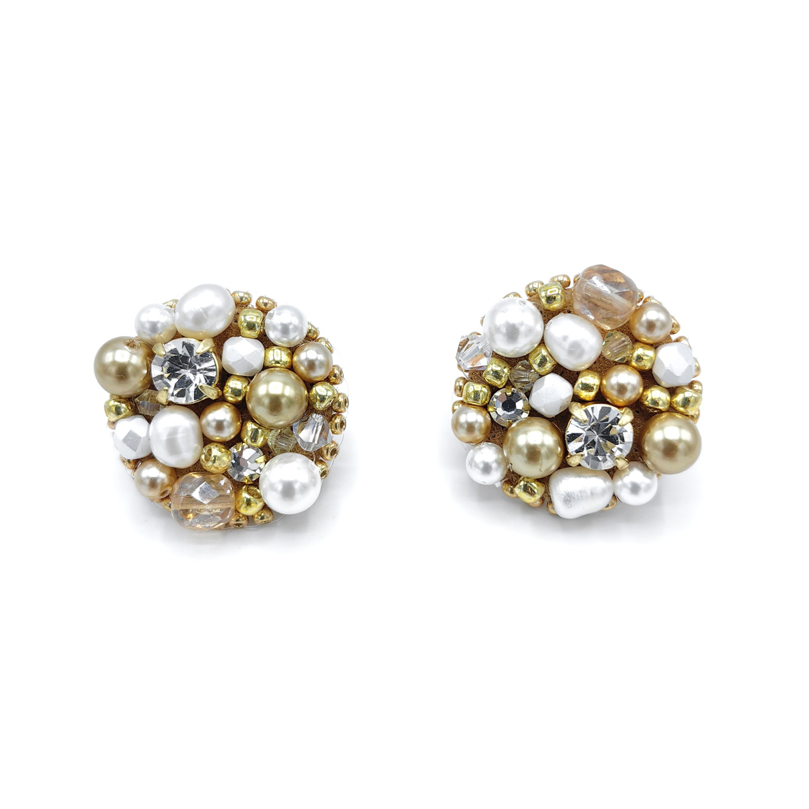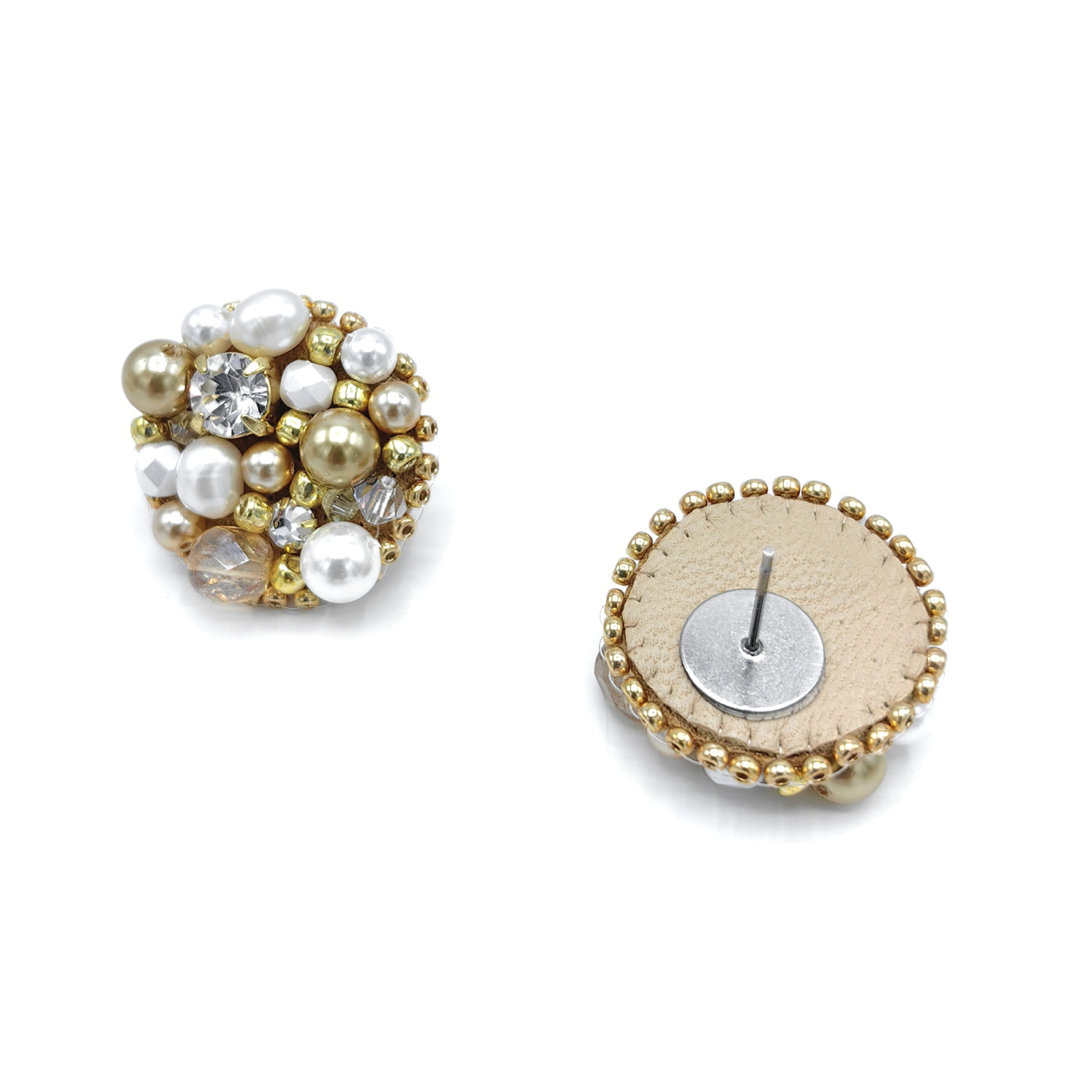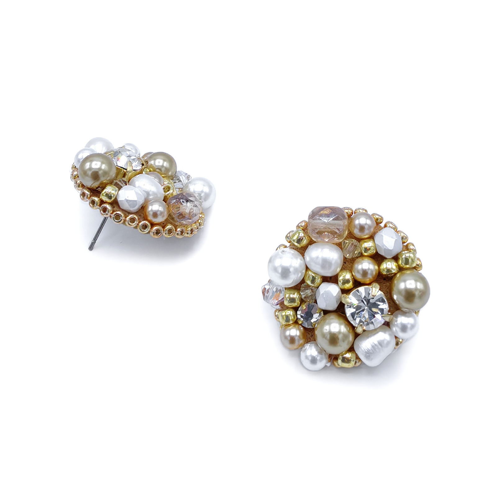 SPARKLE | Cercei eleganti rotunzi culoarea alb auriu cu perle si cristale