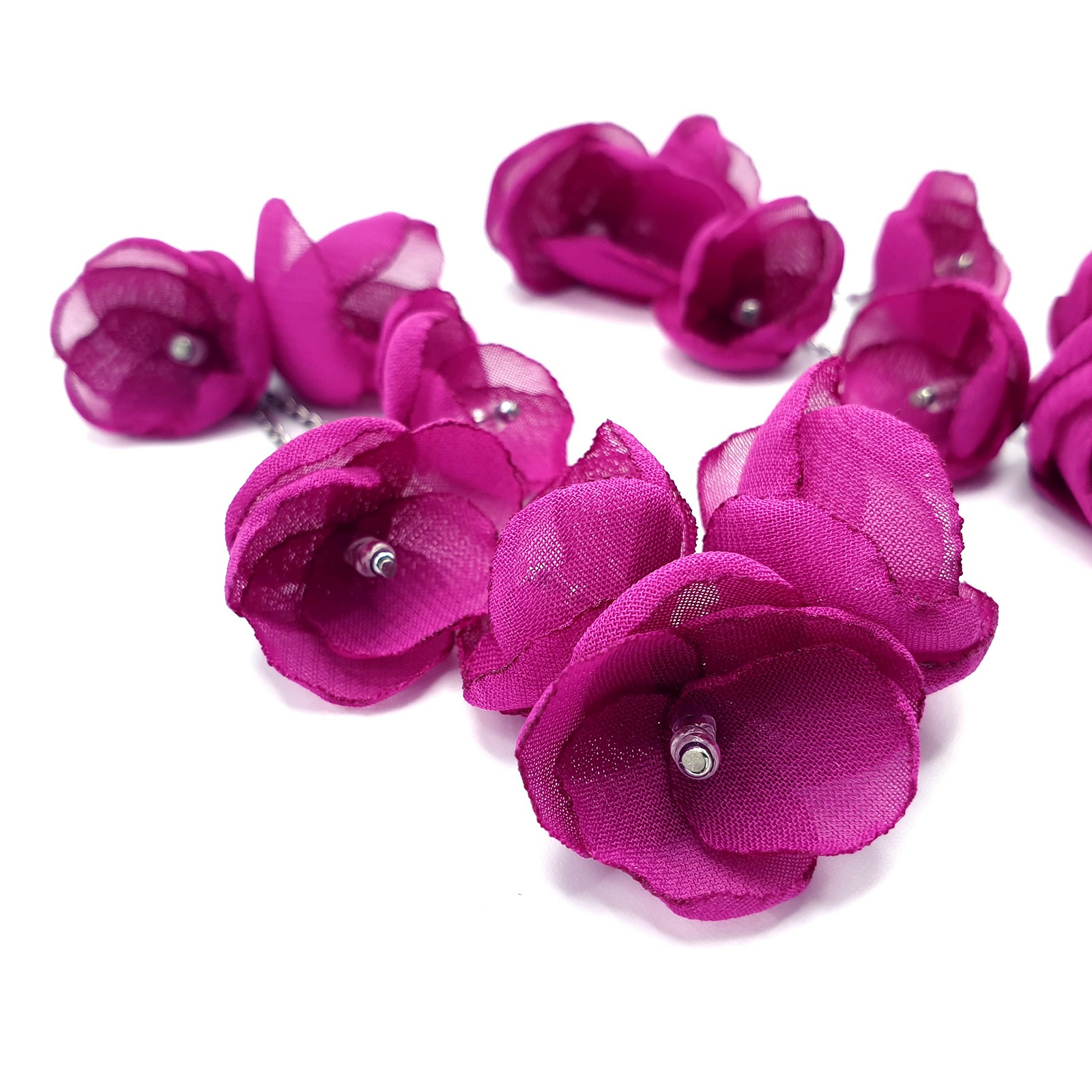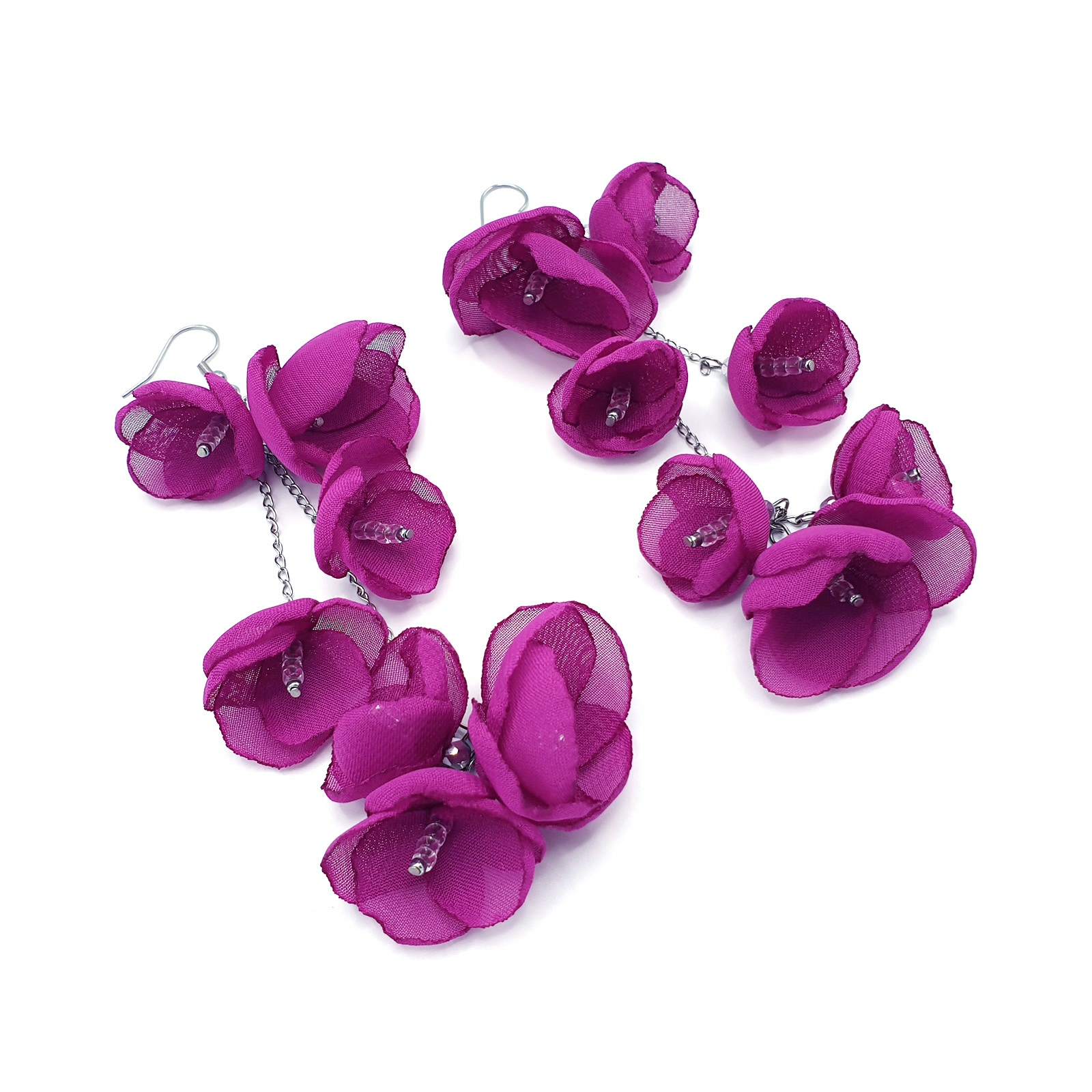 Spring Bloom sunt mai mult decat niste cercei – sunt o stare de spirit. Realizati manual, fiecare floare din voal aduce un plus de unicitate si rafinament. Efectul vizual este uimitor: alungesc gatul, incadreaza chipul si transforma orice tinuta.