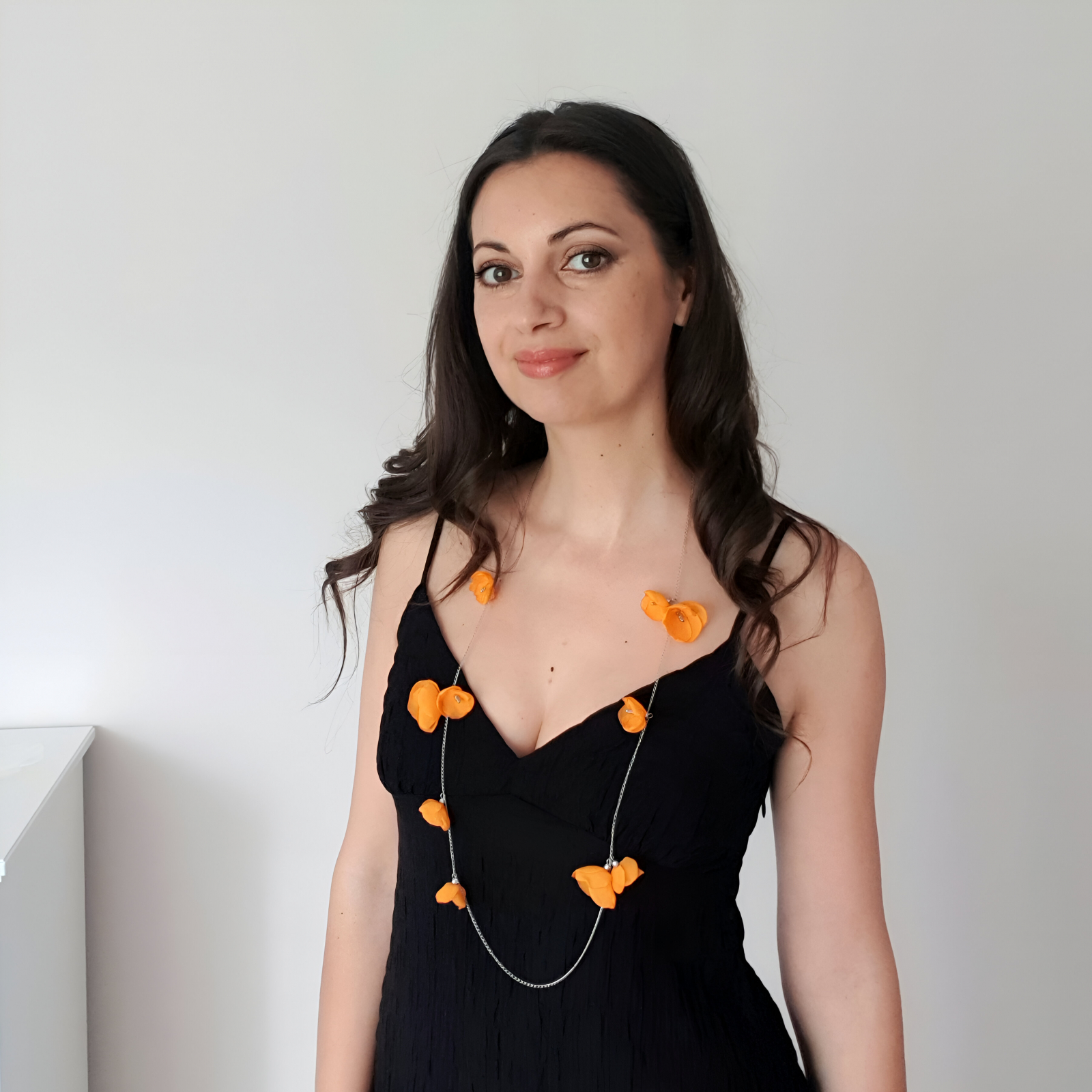 SPRING BLOOM - Bijuterie multifunctionala, colier la baza gatului sau lung, bratara, flori culoarea portocaliu