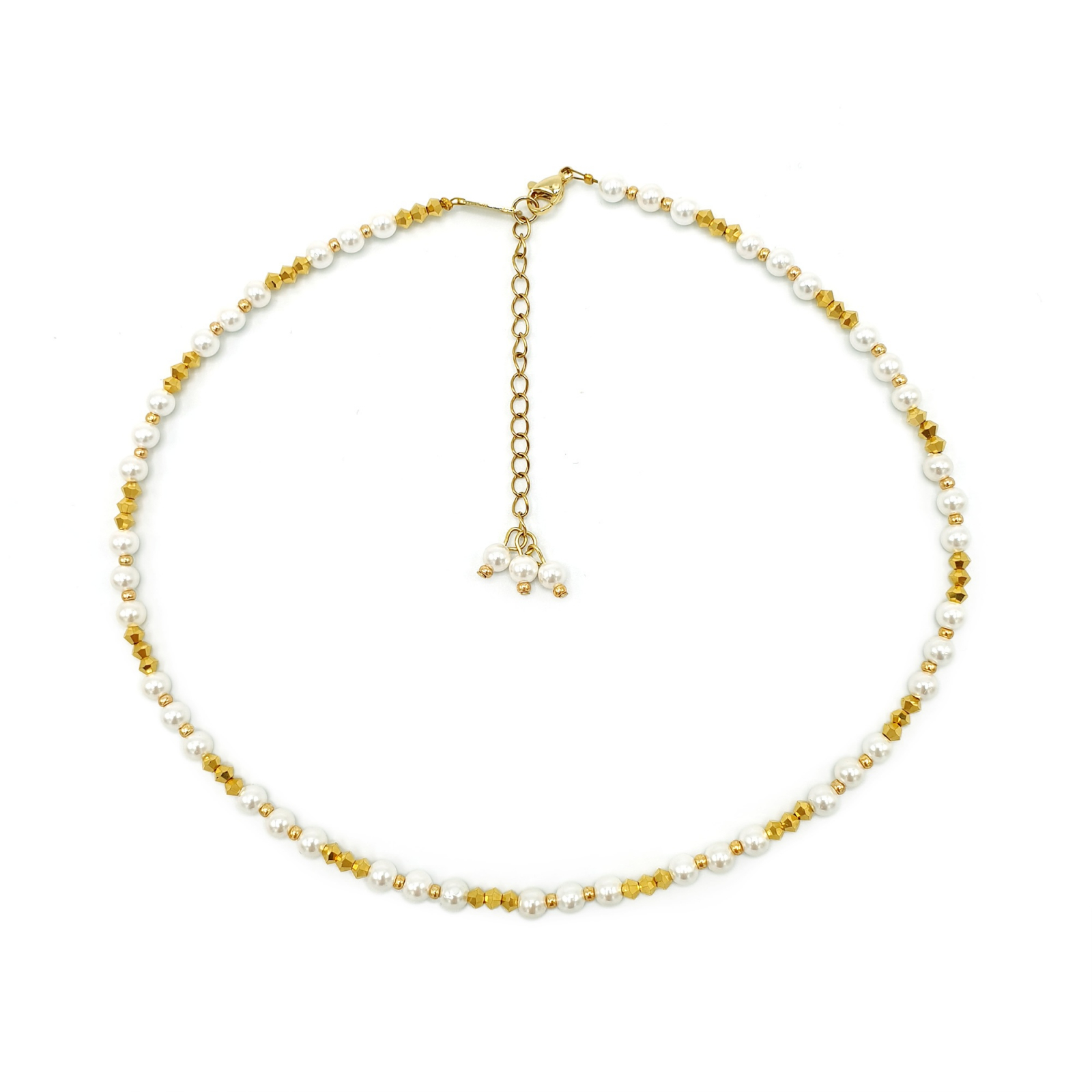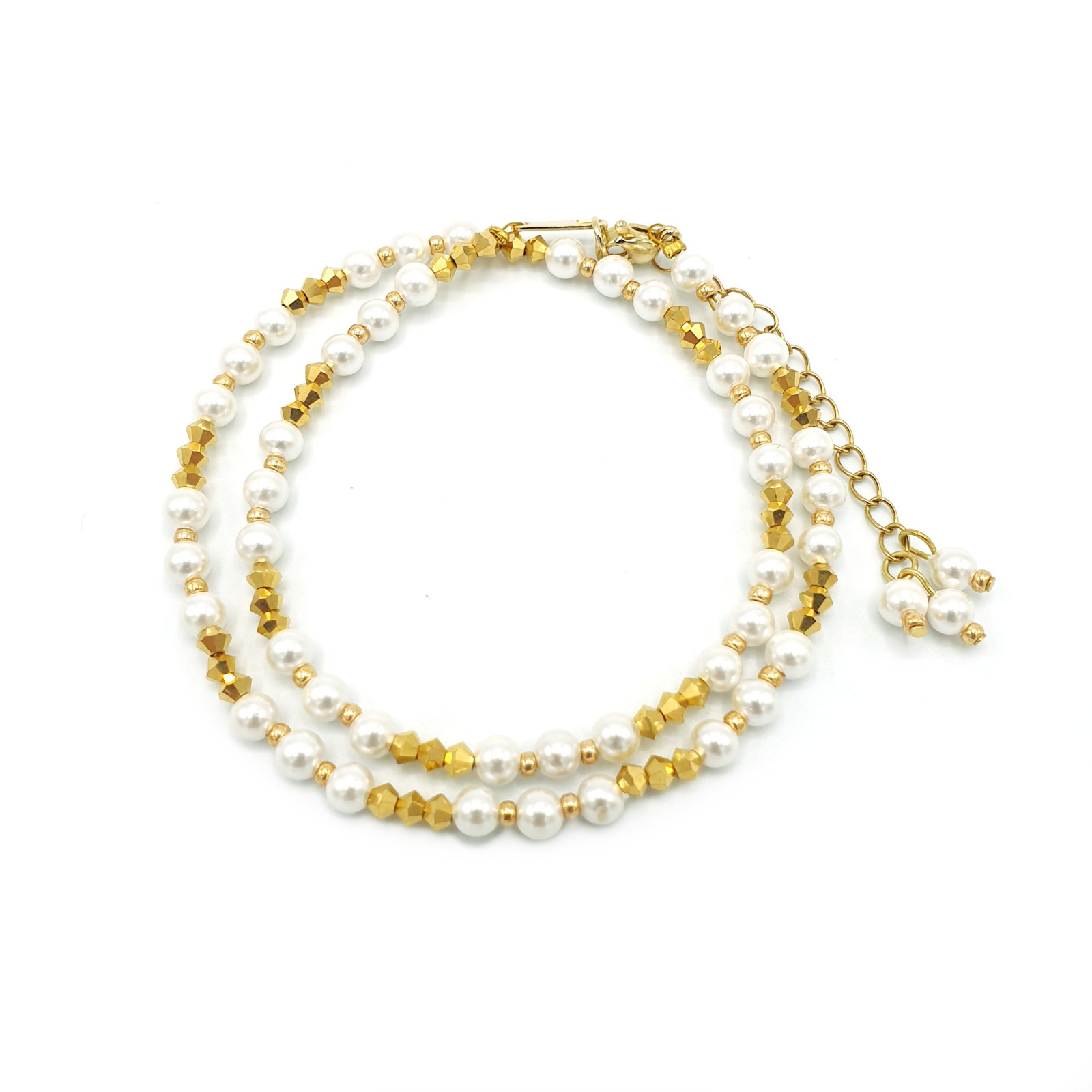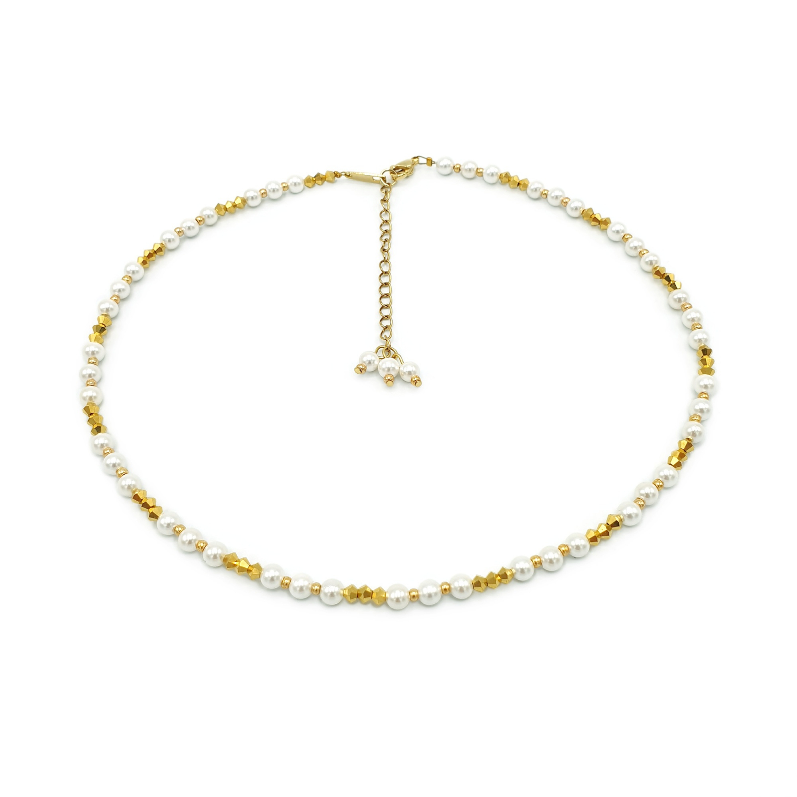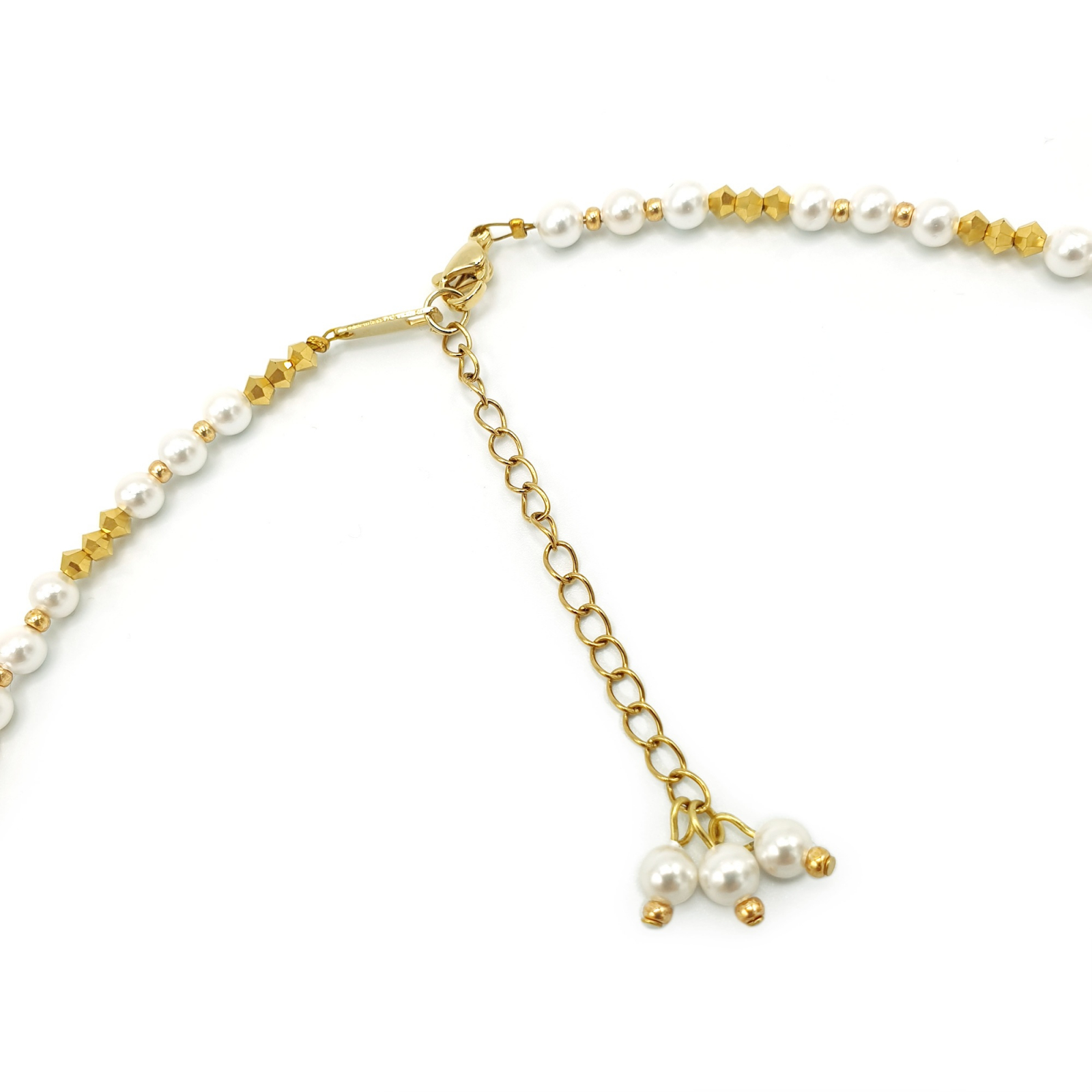 SWEET SPARKLE - Colier subtire la baza gatului sau bratara perle si cristale mici alb si auriu