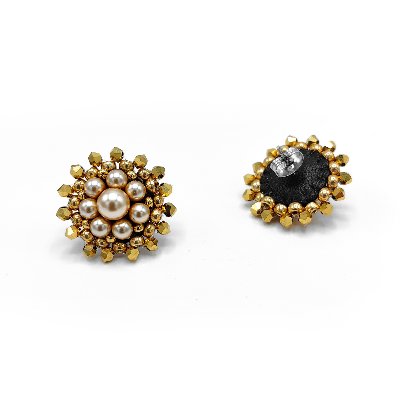 Materiale folosite: perle si cristale de calitate superioara (tip Mallorca, Preciosa, Onix, Miyuki din Japonia), piele, ac si surub din otel inoxidabil 304.