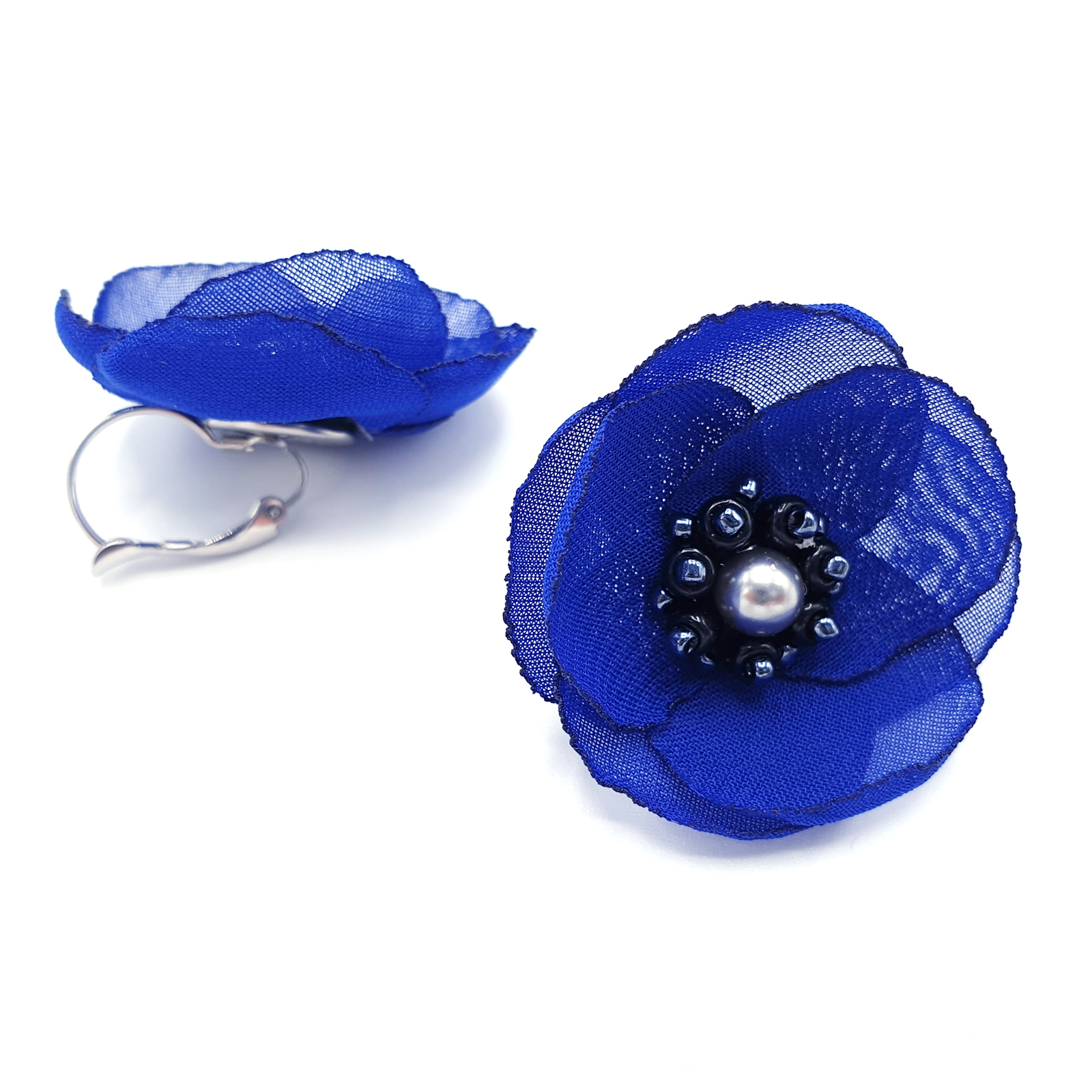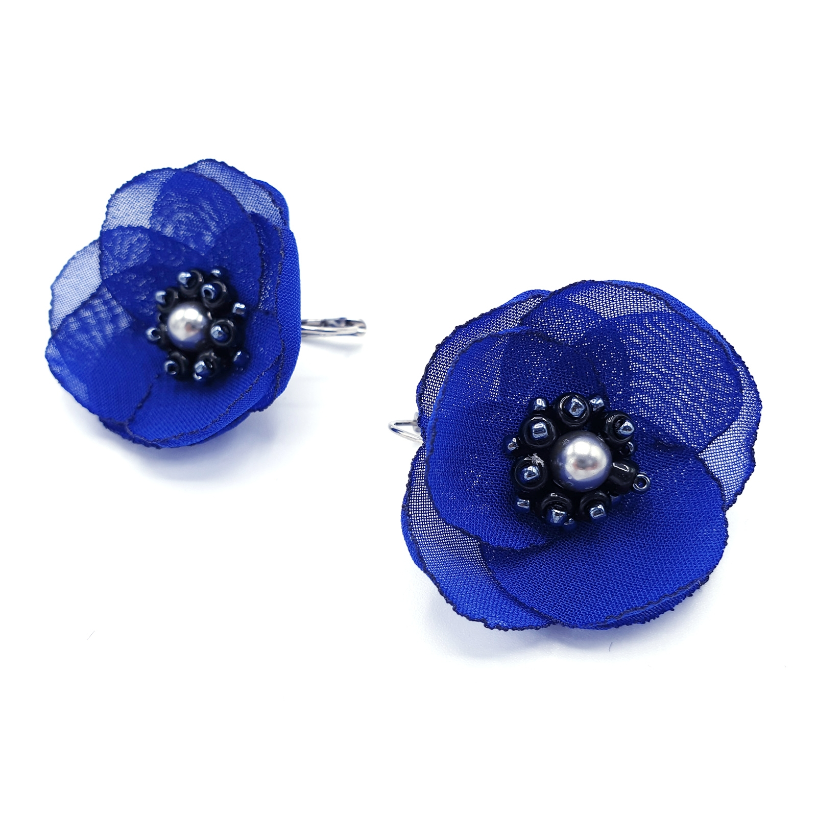 LOVE - Cercei eleganti design floral tortite de inox culoarea albastru