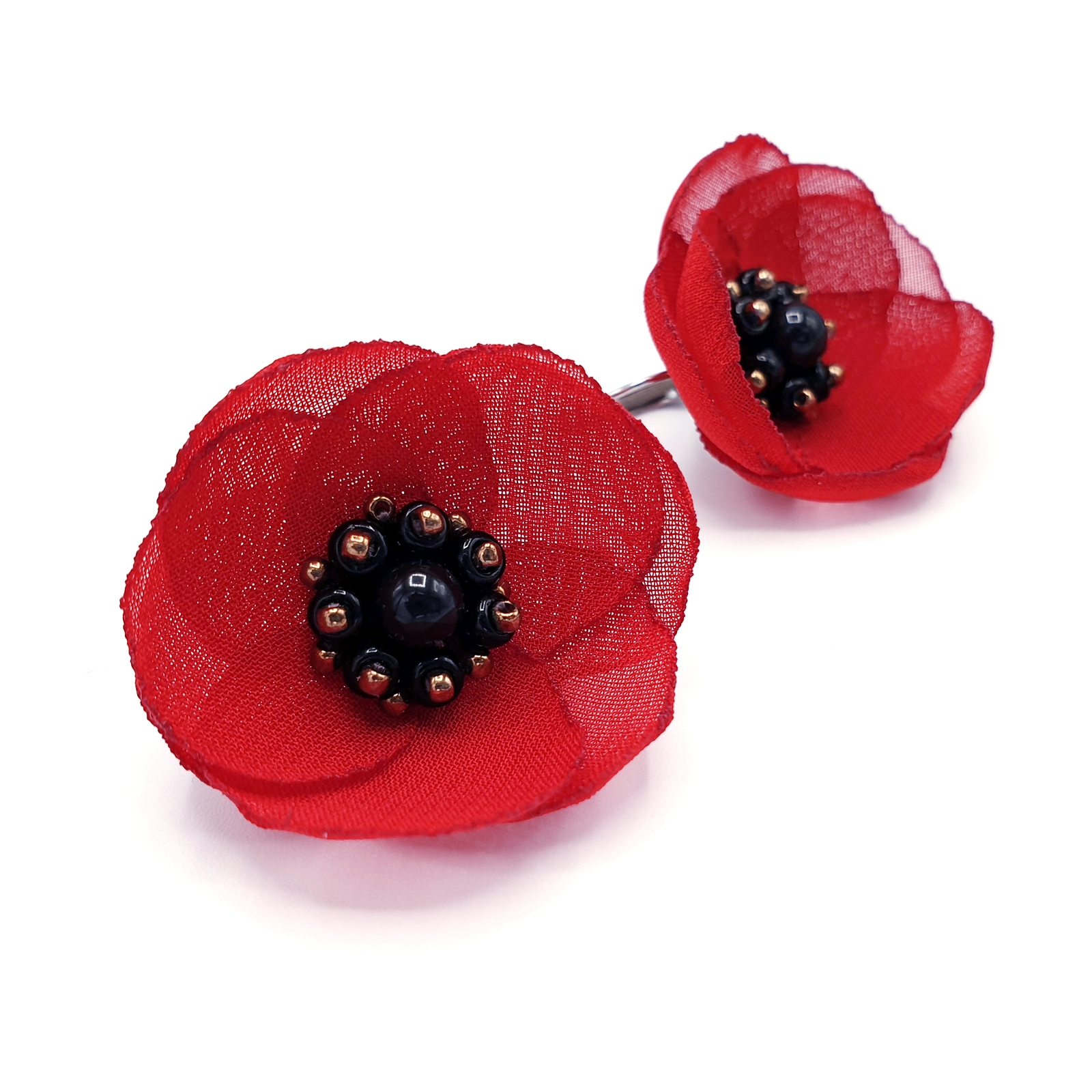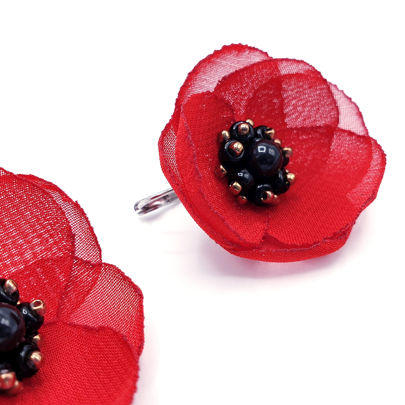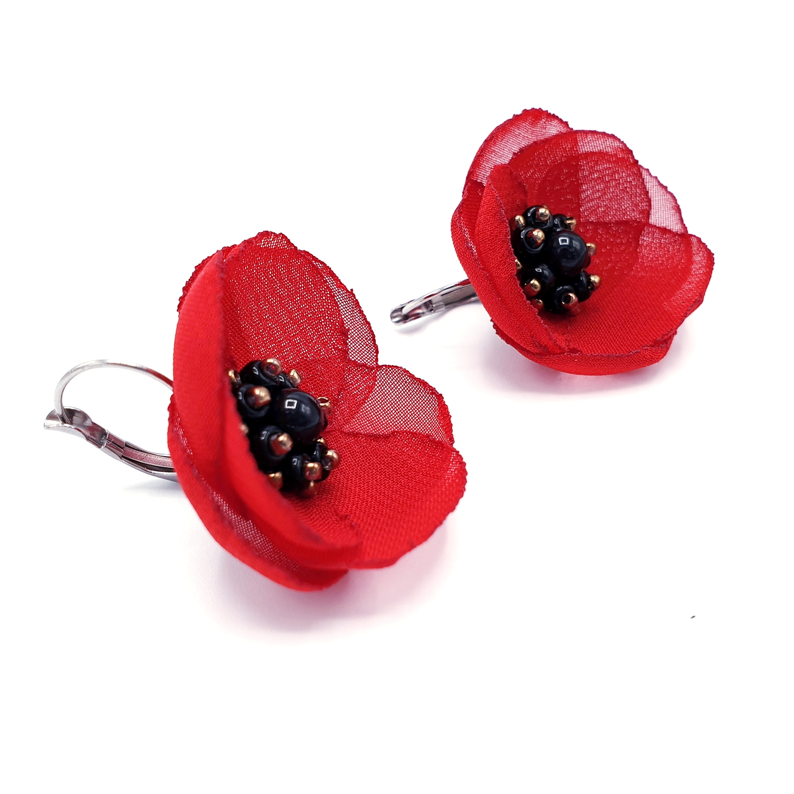 LOVE - Cercei maci rosii din voal, tortite inox, design floral