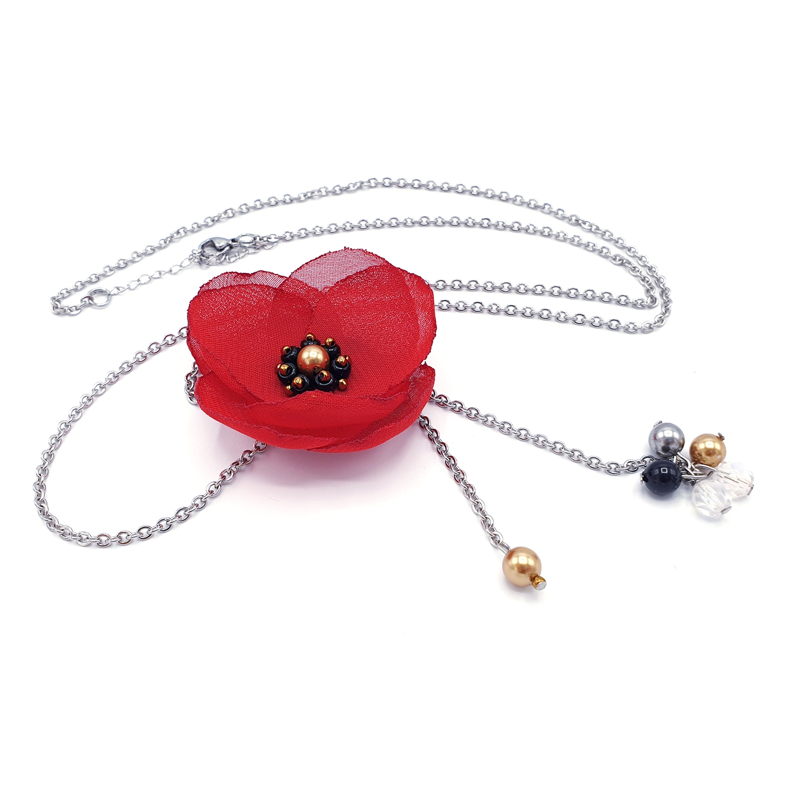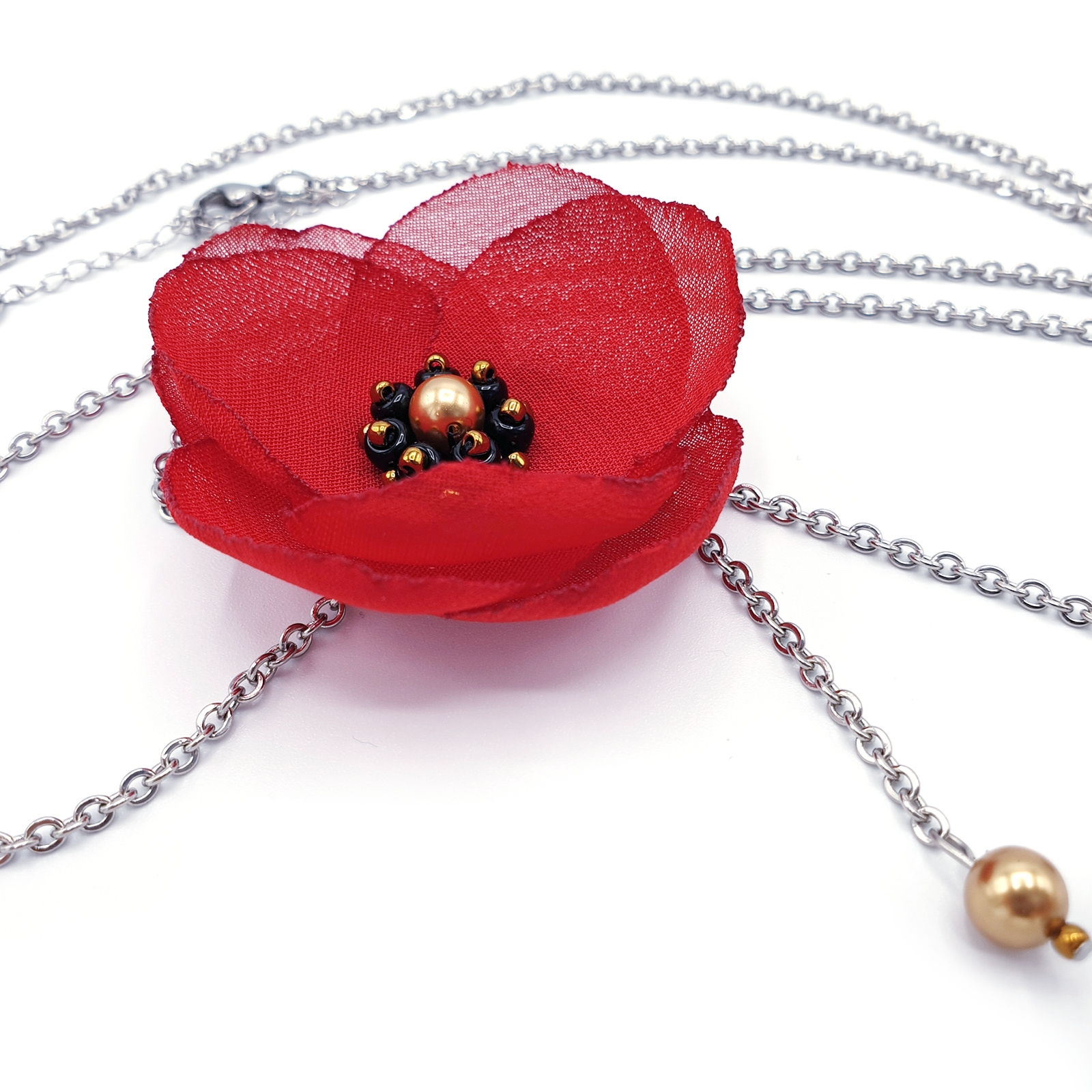 LOVE - Colier lung pandantiv mac rosu, voal si inox