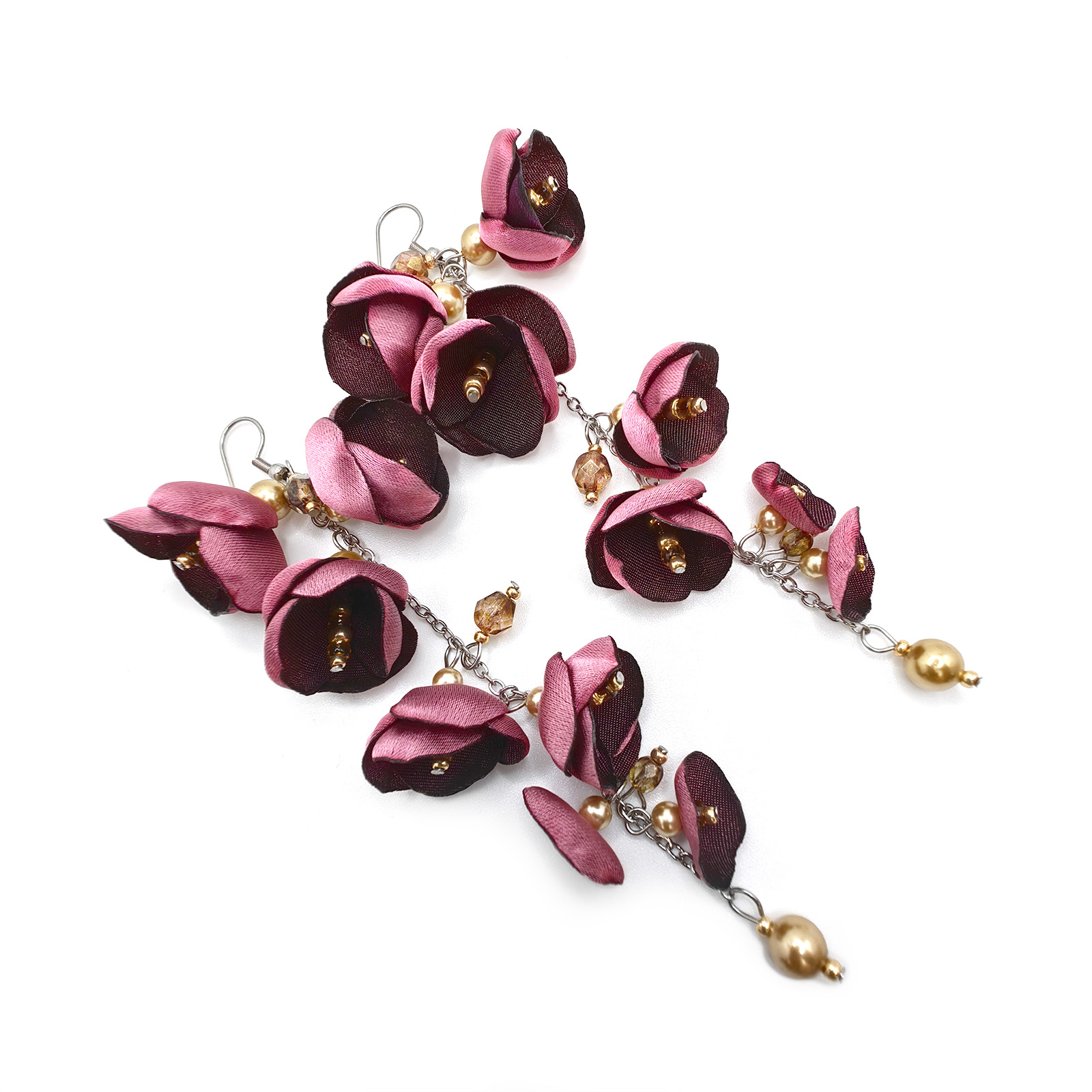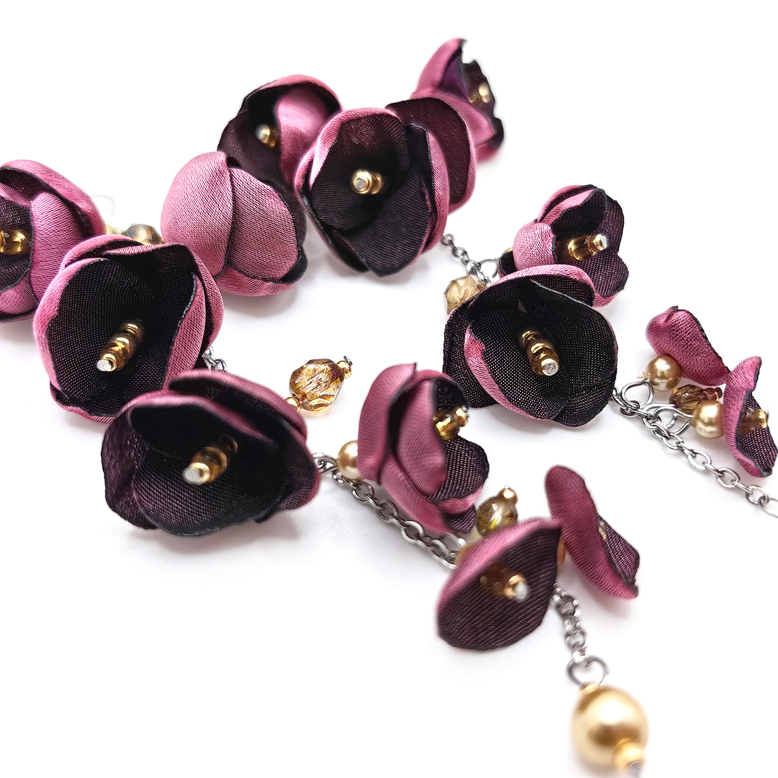 Cerceii Seduction sunt creati pentru aparitii spectaculoase. Designul foarte lung, realizat din flori de matase satinata, perle si cristale stralucitoare, aduce un efect fluid, feminin si seducator.