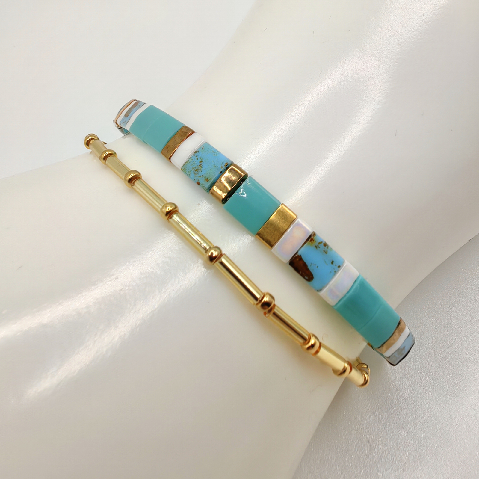 Zuri - Set 2 bratari elegante cu margele Miyuki, margele placate cu Aur 24K