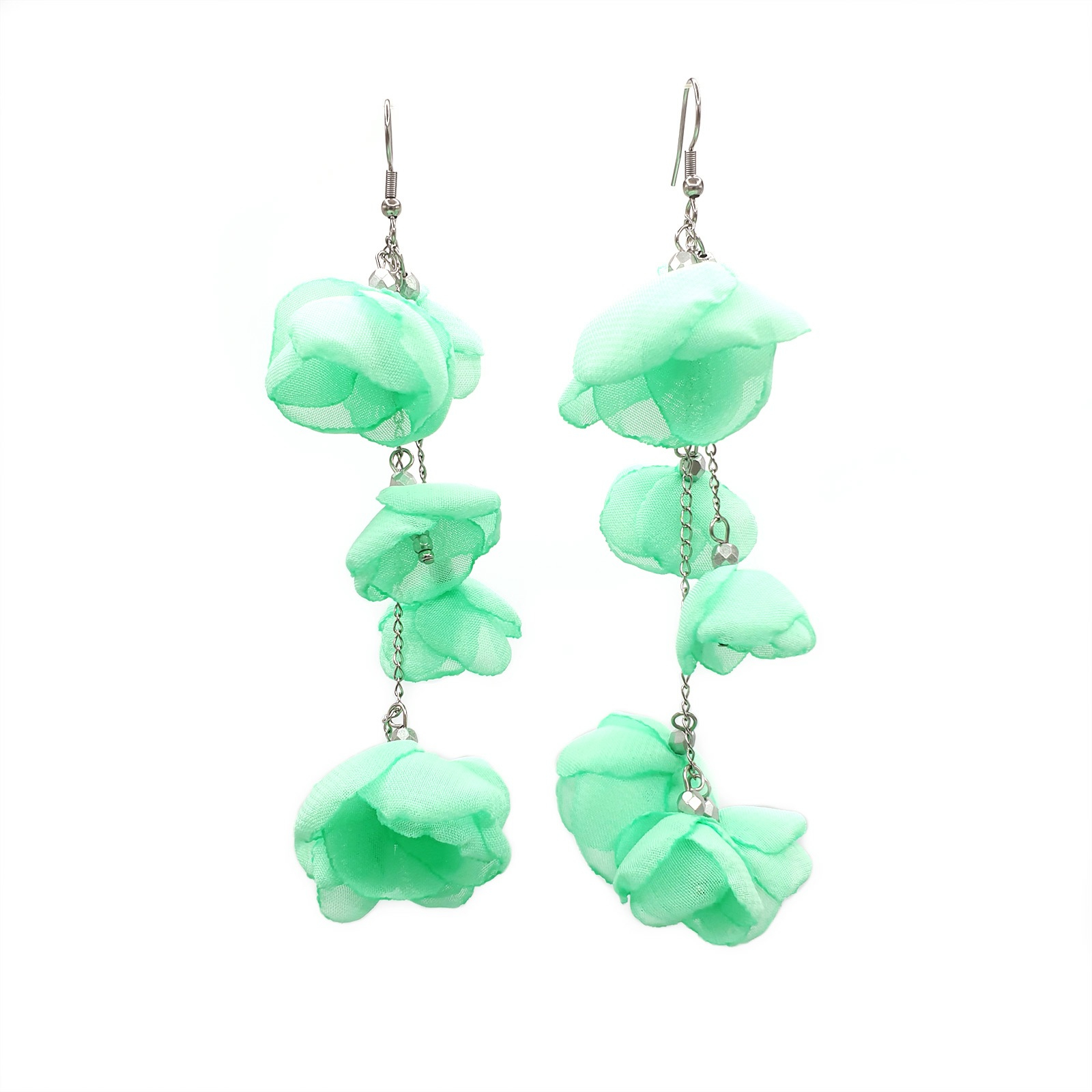 SPRING BLOOM - Cercei foarte lungi cu flori din voal, 11 cm, culoarea verde menta