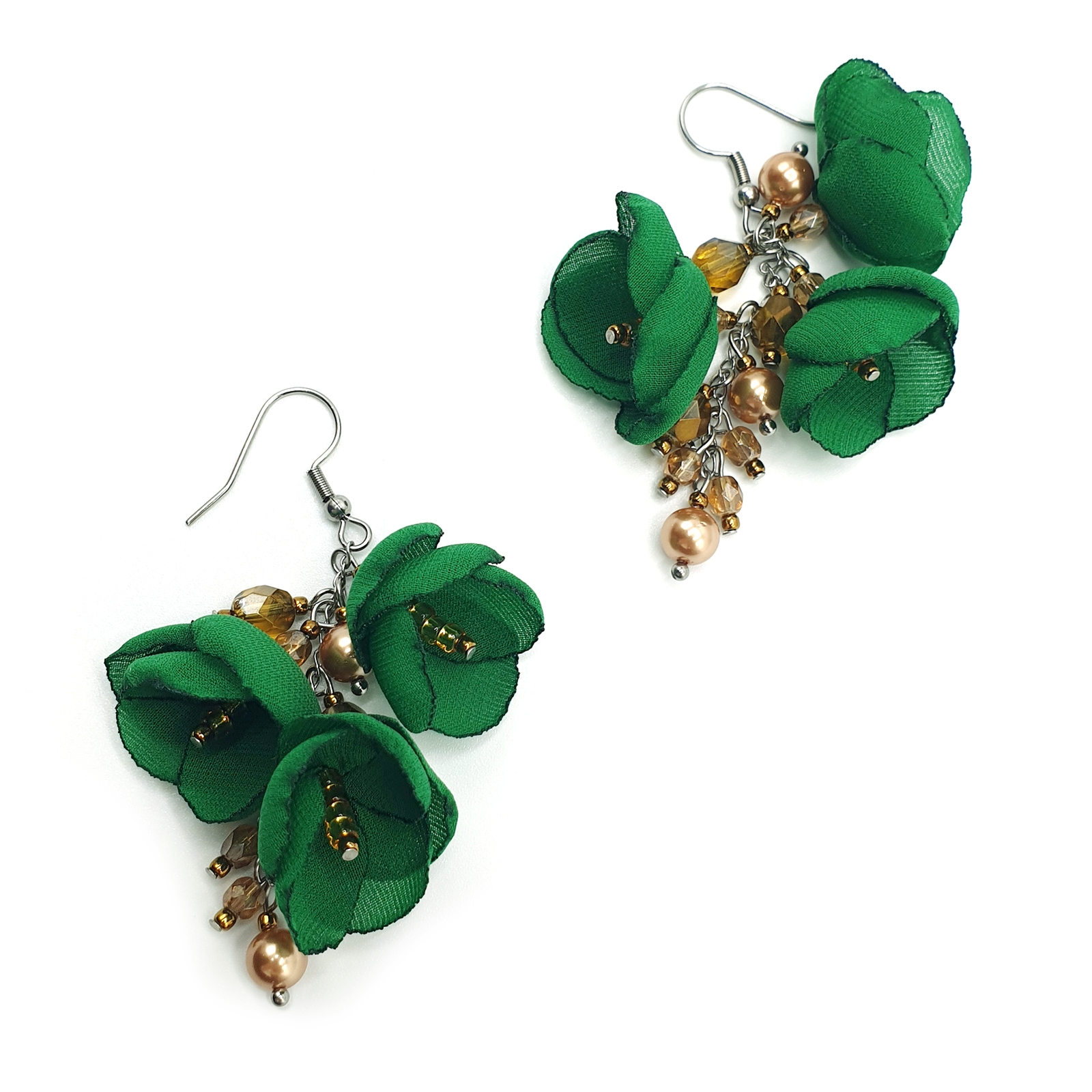 Feminini si rafinati, acesti cercei lungi aduc o nota de visare oricarei tinute. Combinatia dintre perle, cristale si flori delicate din voal transforma fiecare aparitie intr-o declaratie de eleganta si emotie. Sunt creati pentru femeia care stie ca frumusetea sta in detalii.
