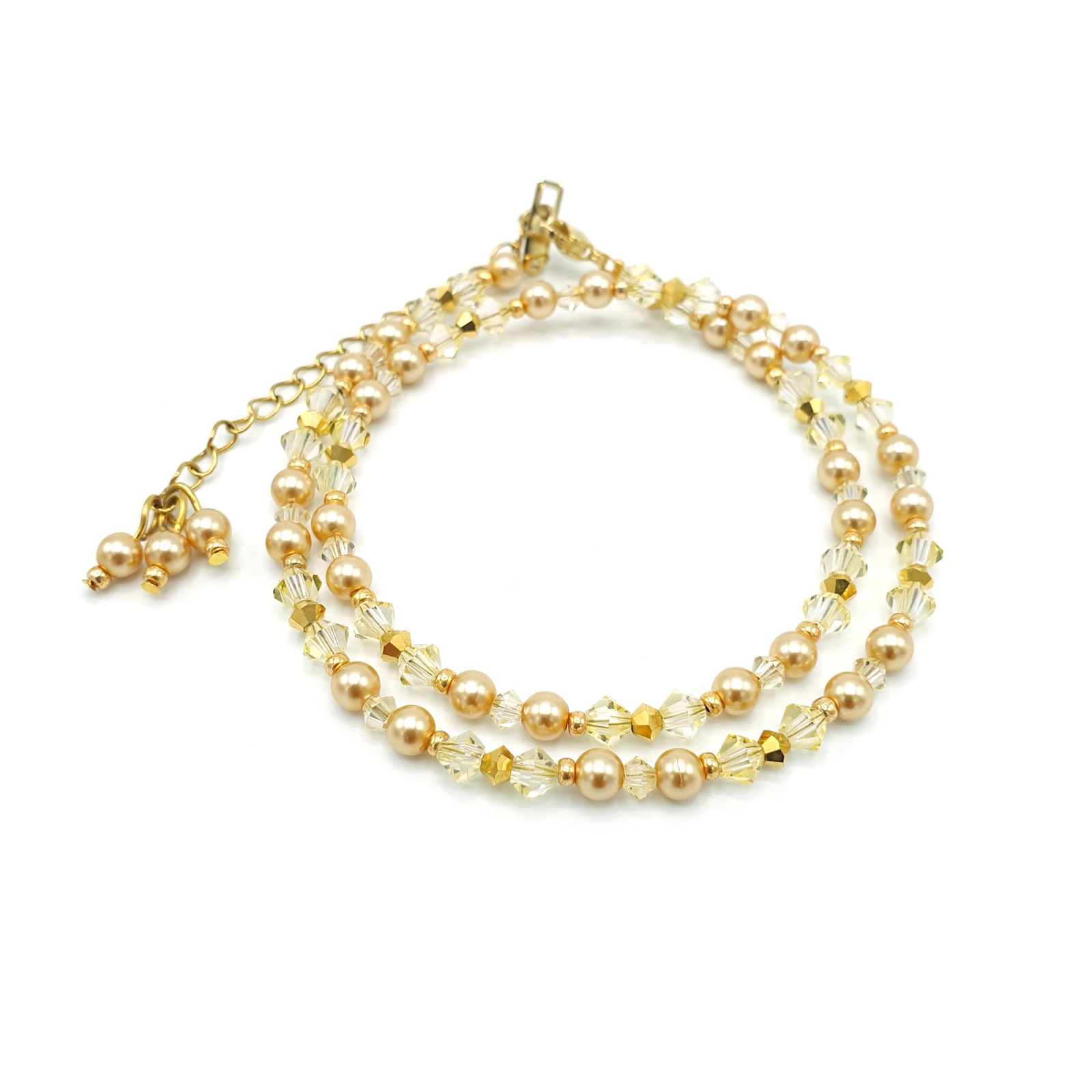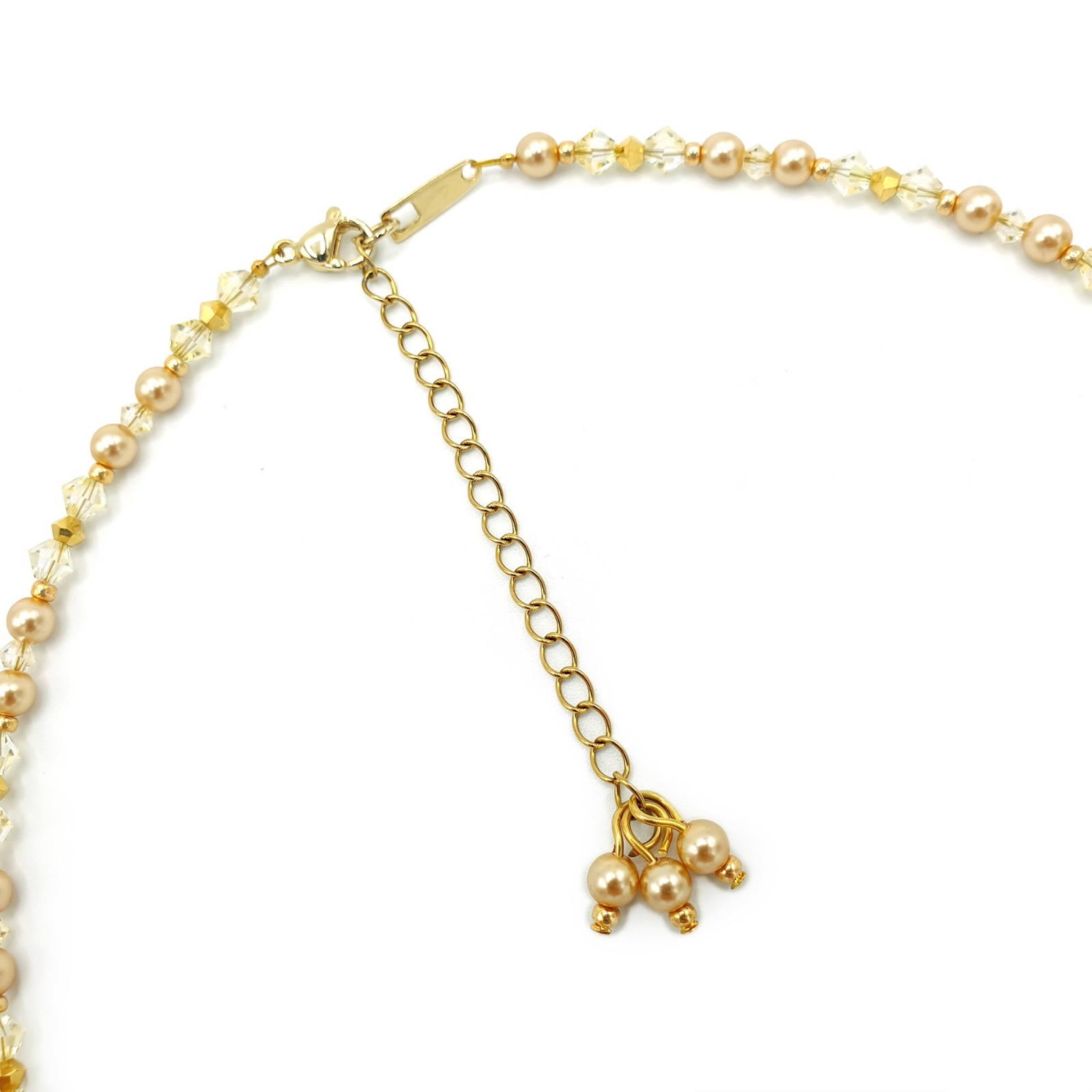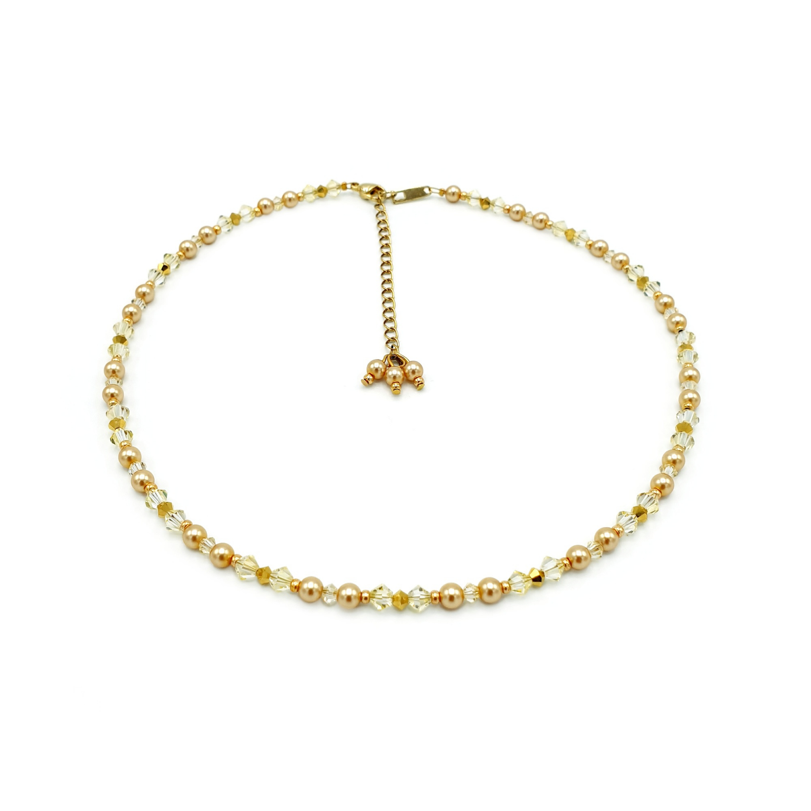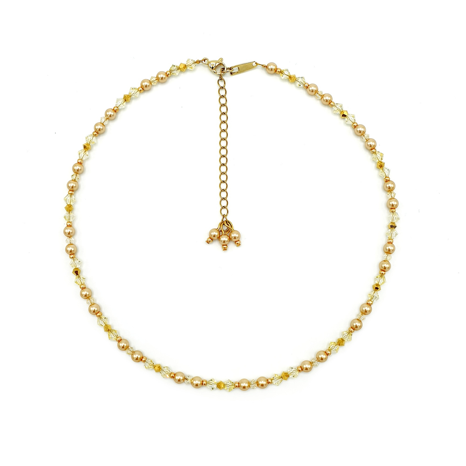 SWEET SPARKLE - Colier subtire cu perle si cristale la baza gatului culoarea auriu